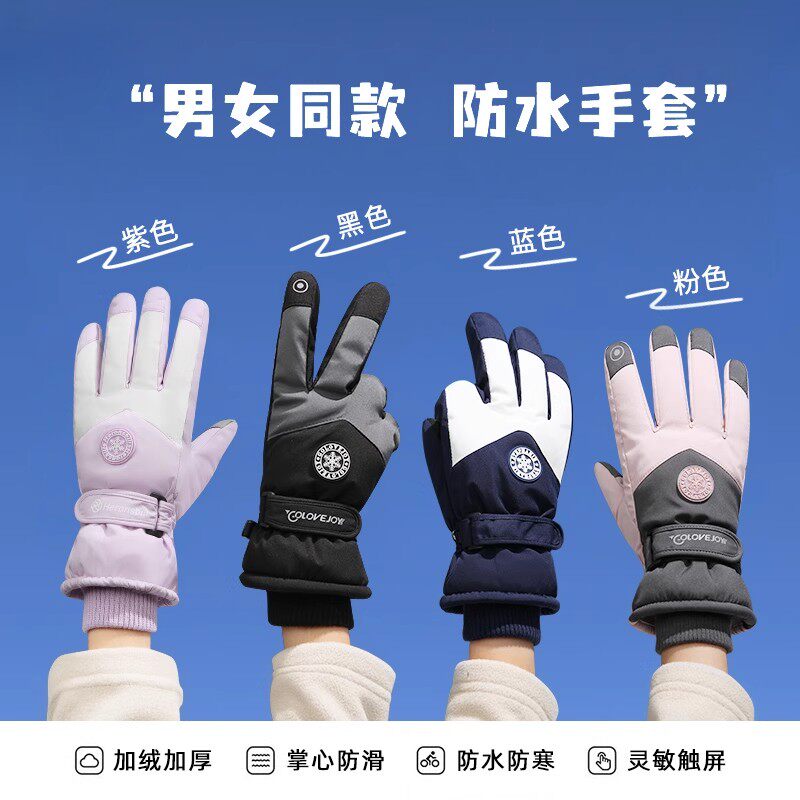 滑雪手套女士冬季保暖防寒男骑行摩托车加绒加厚儿童触屏防水登山