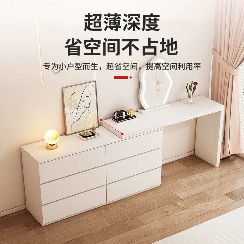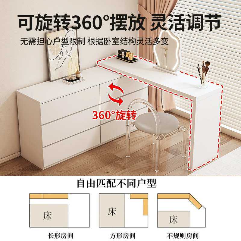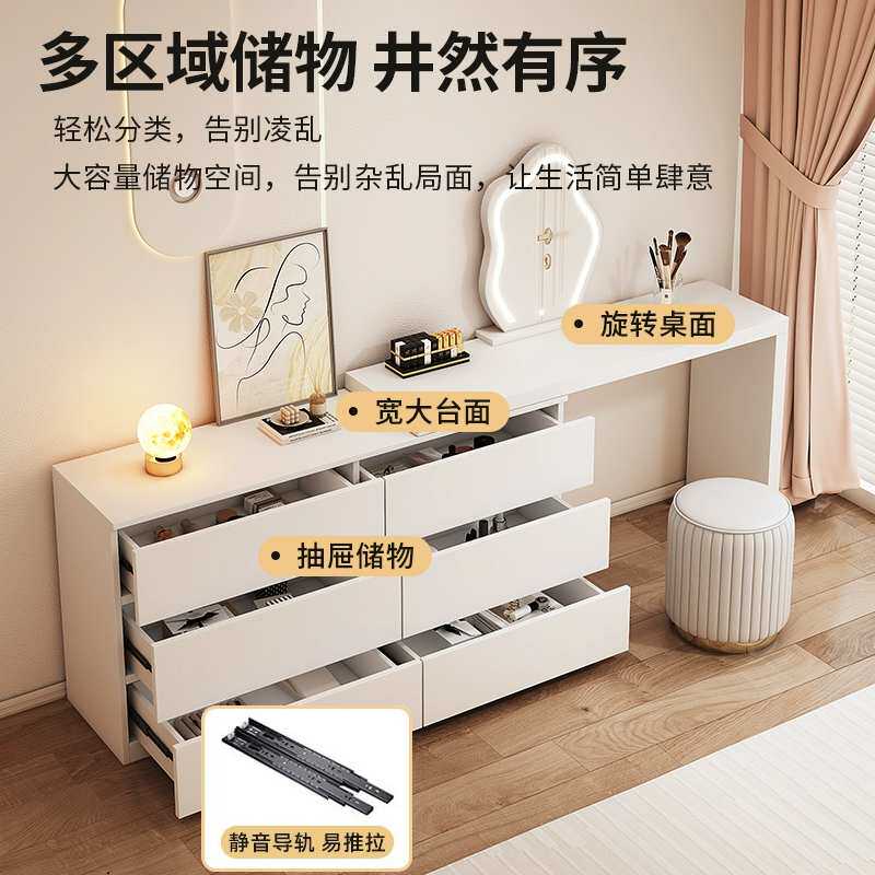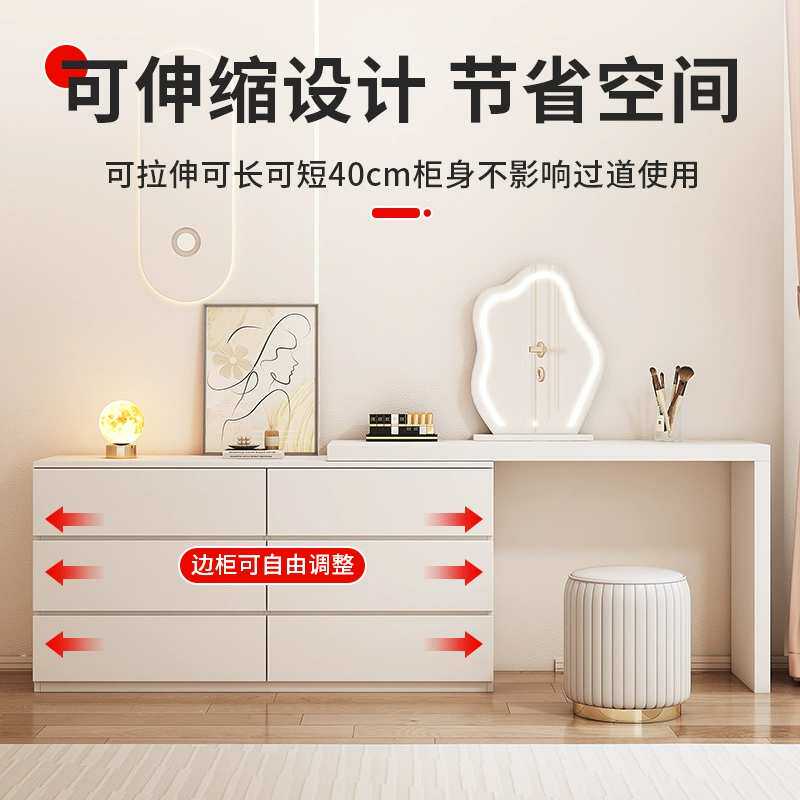 ?梳妆台卧室书桌斗柜一体现代简约网红轻奢小户型奶油风伸缩化妆