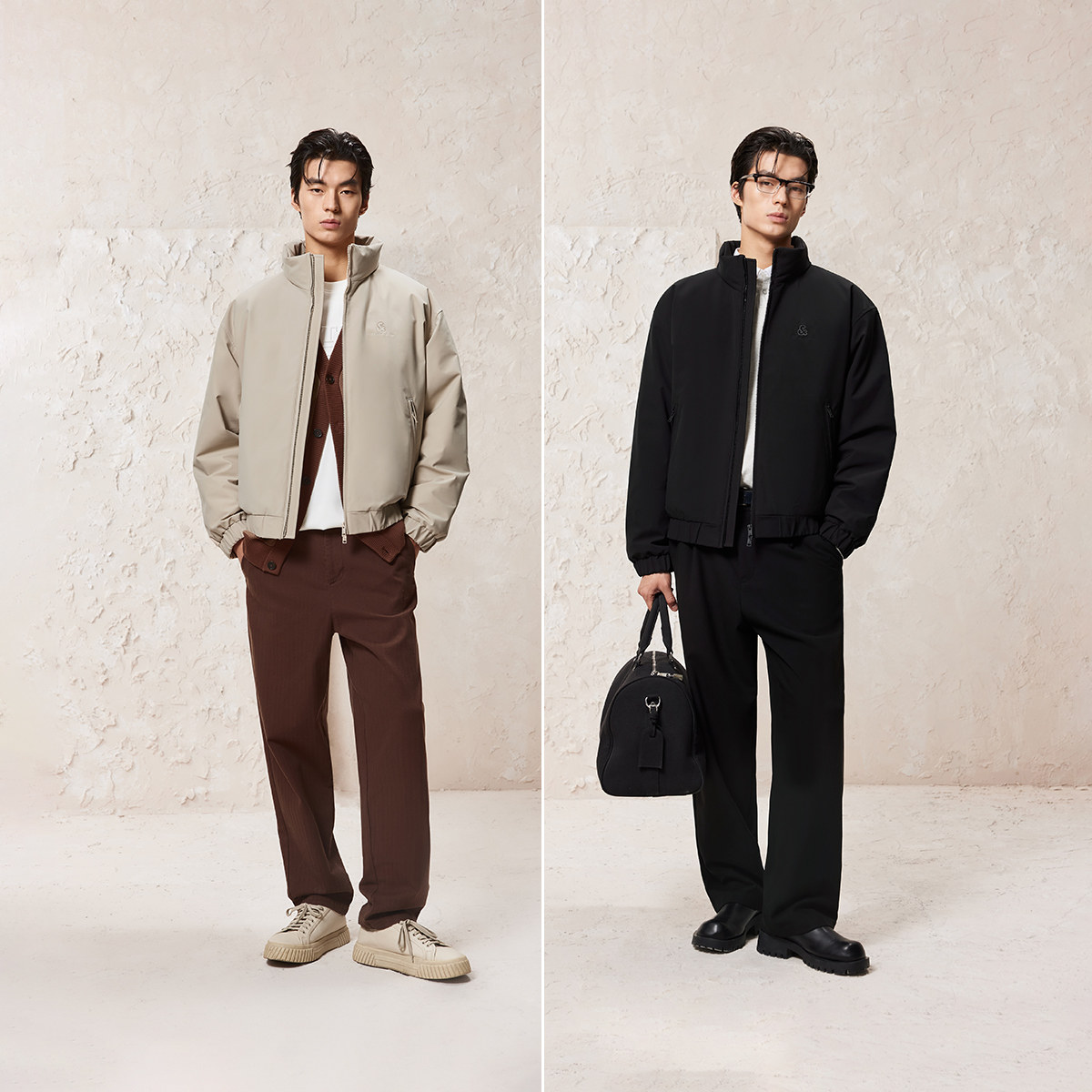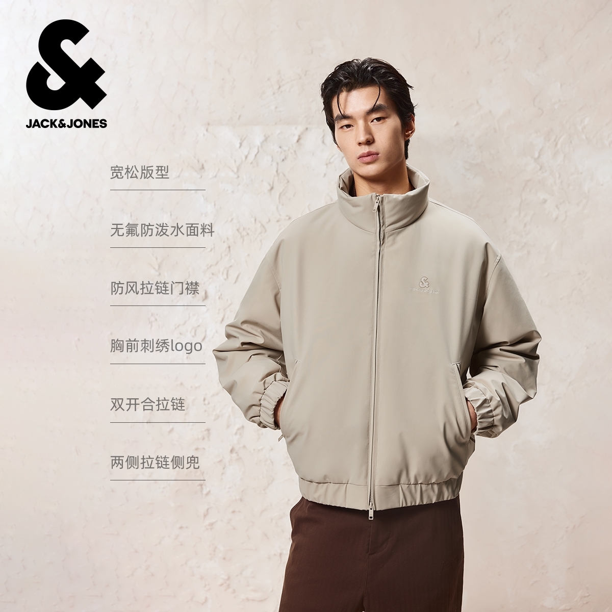 略宽松版型,立领领型,防风拉链门襟