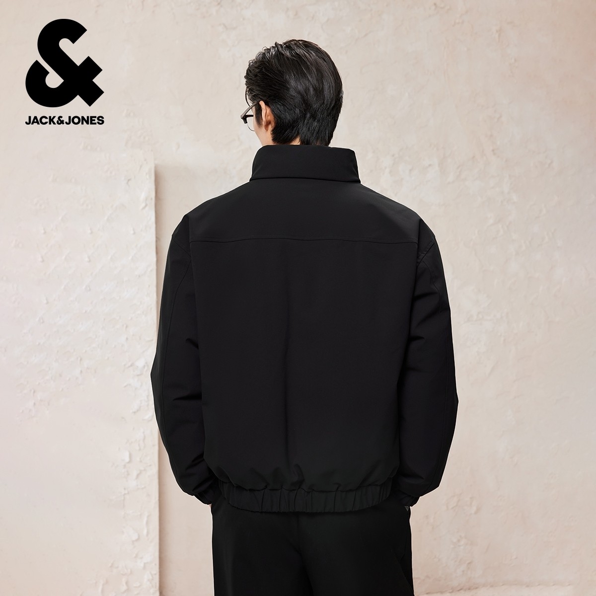 杰克琼斯男装冬季新款时尚简约纯色防风拉链宽松立领羽绒服外套
