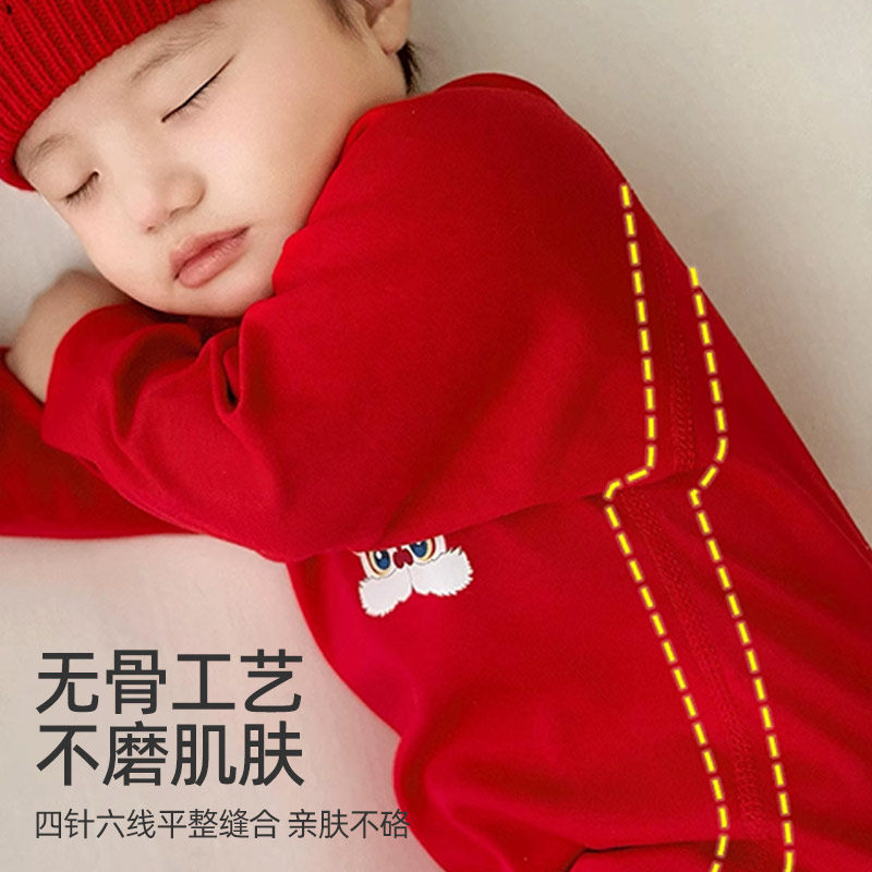 婧麒婴儿衣服百天宝宝衣服满月连体衣红色哈衣喜庆春秋周岁宴爬服