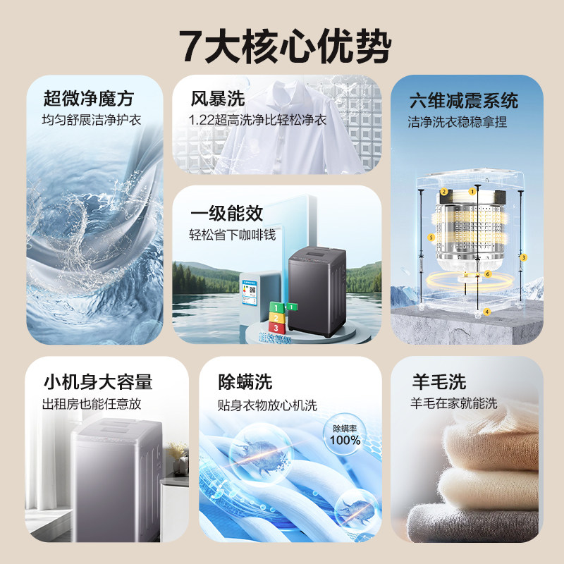 海尔出品统帅7.2Kg大容量全自动除螨波轮洗衣机租房家用20D