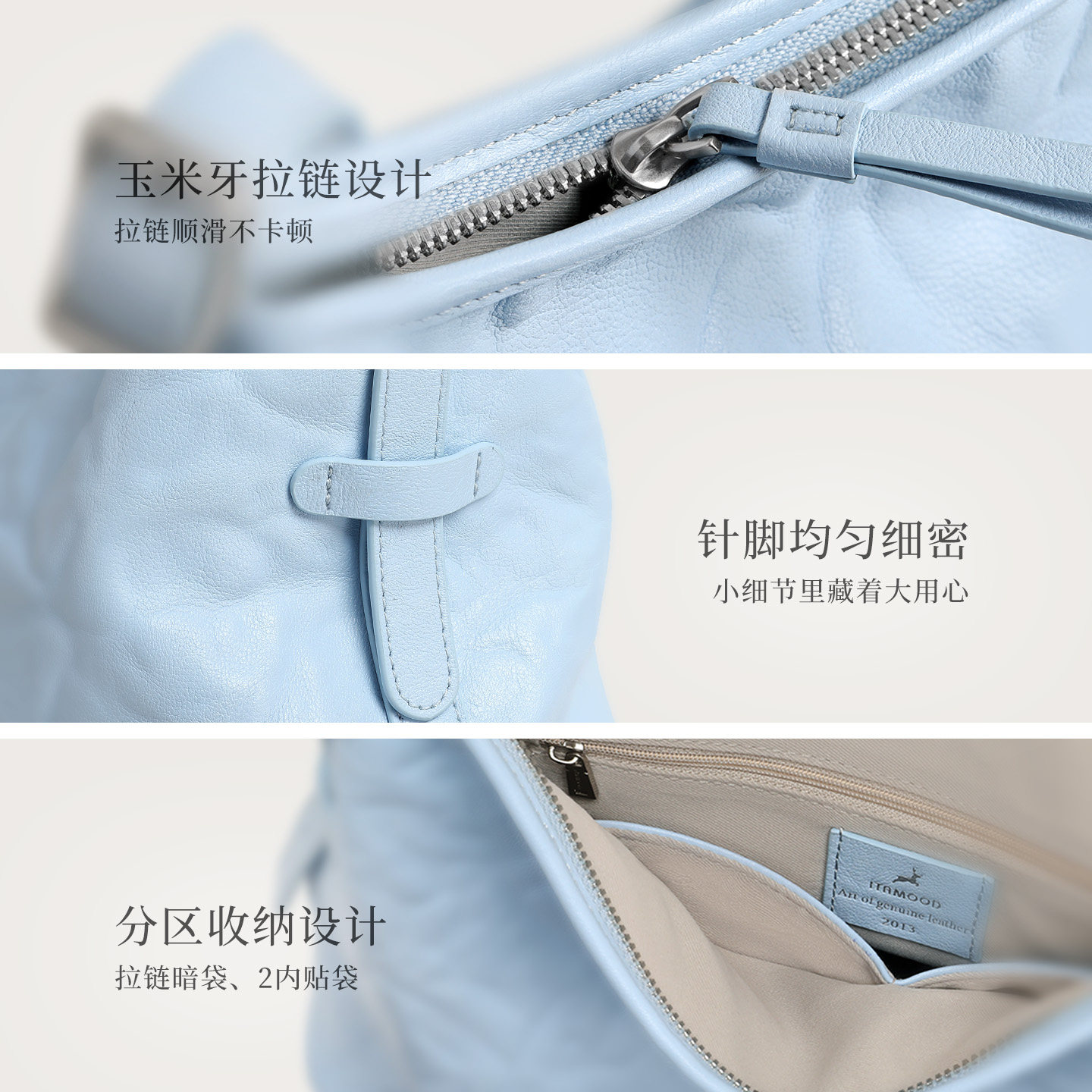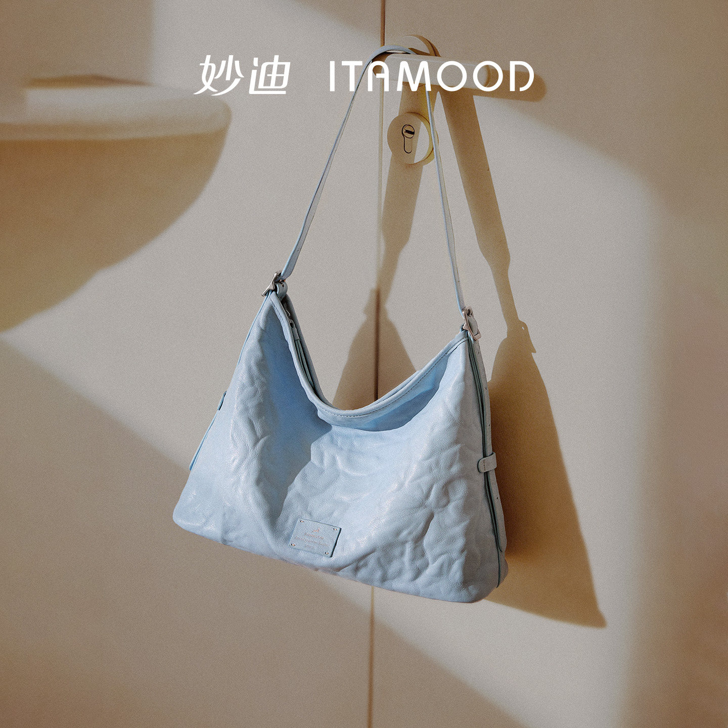 妙迪真皮腋下包2026春新款通勤大容量托特包蓝色牛皮斜挎包包女士