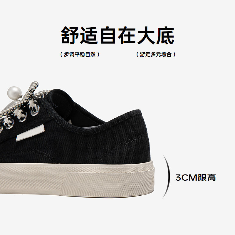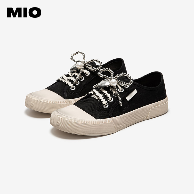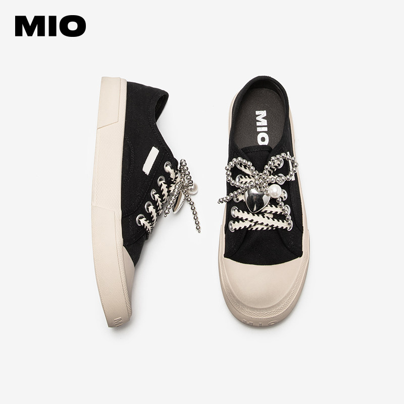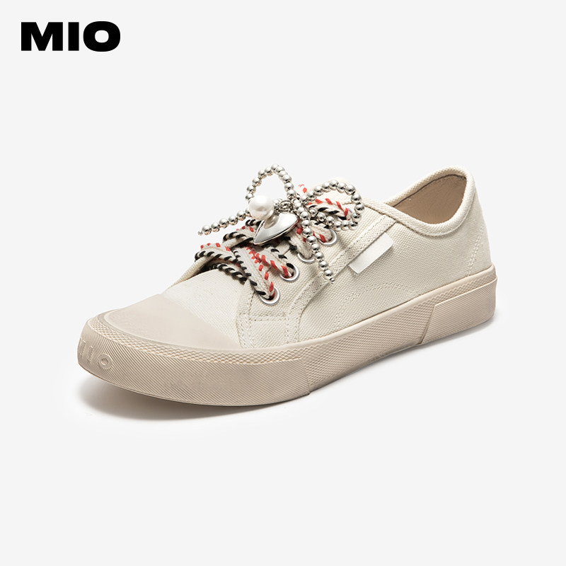 MIO米奥春款百搭休闲鞋做旧板鞋金属珠链装饰帆布鞋时尚女鞋