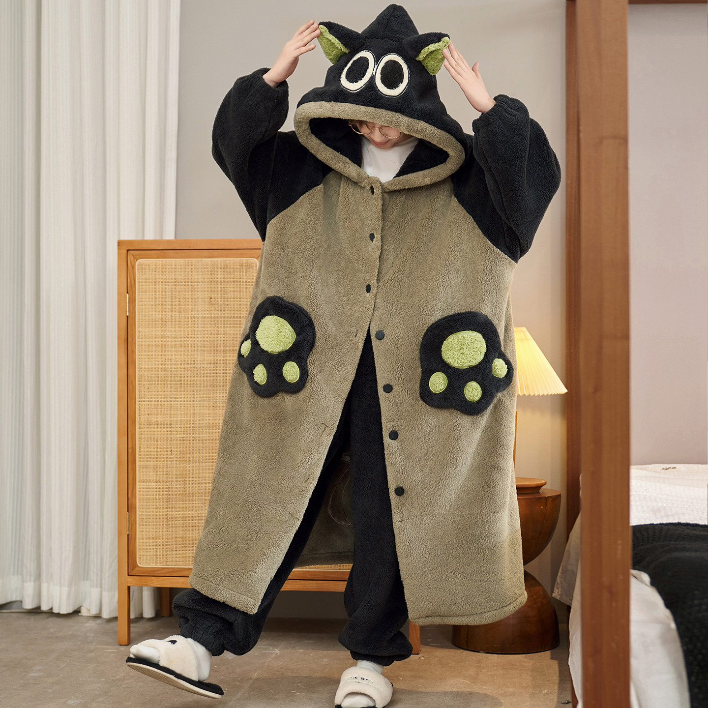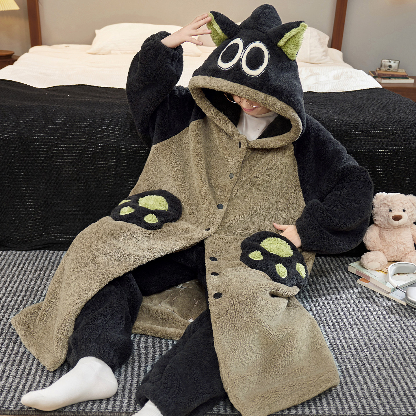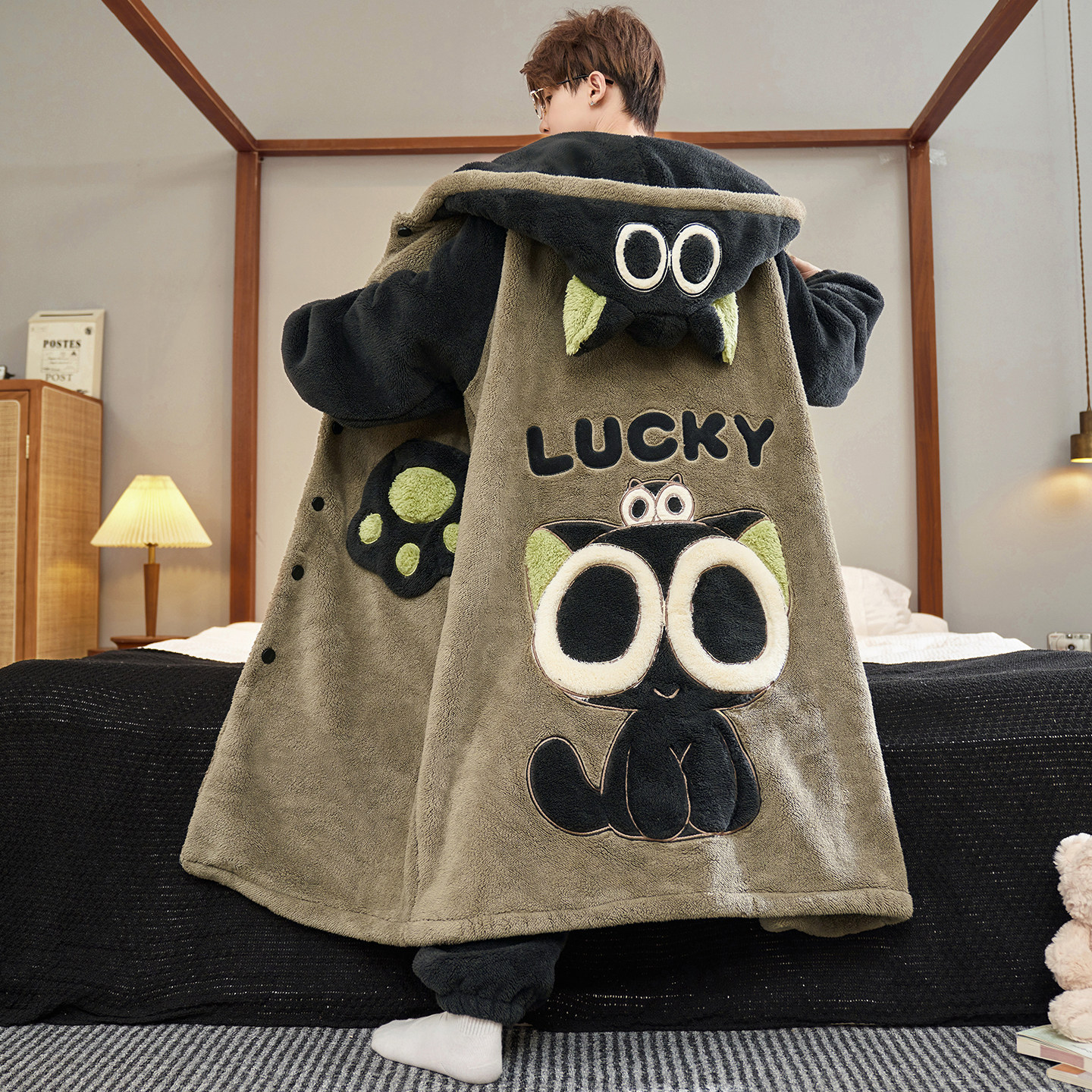 肖战同款猫人暖绒绒家居服半边绒男女2025新款冬季睡衣可外穿加厚