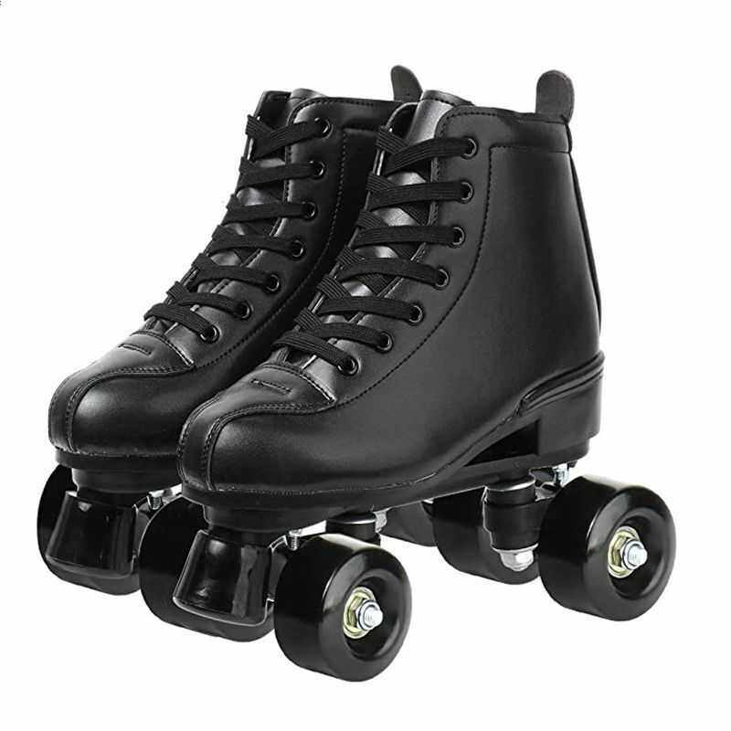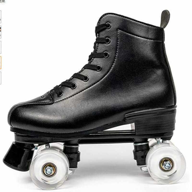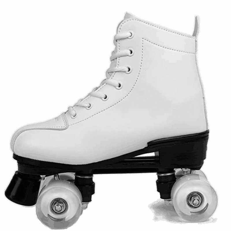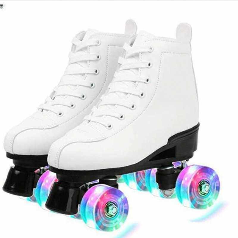 白皮双排溜冰鞋儿童四轮滑鞋成年男女旱冰鞋双排轮滑冰鞋炫酷闪光