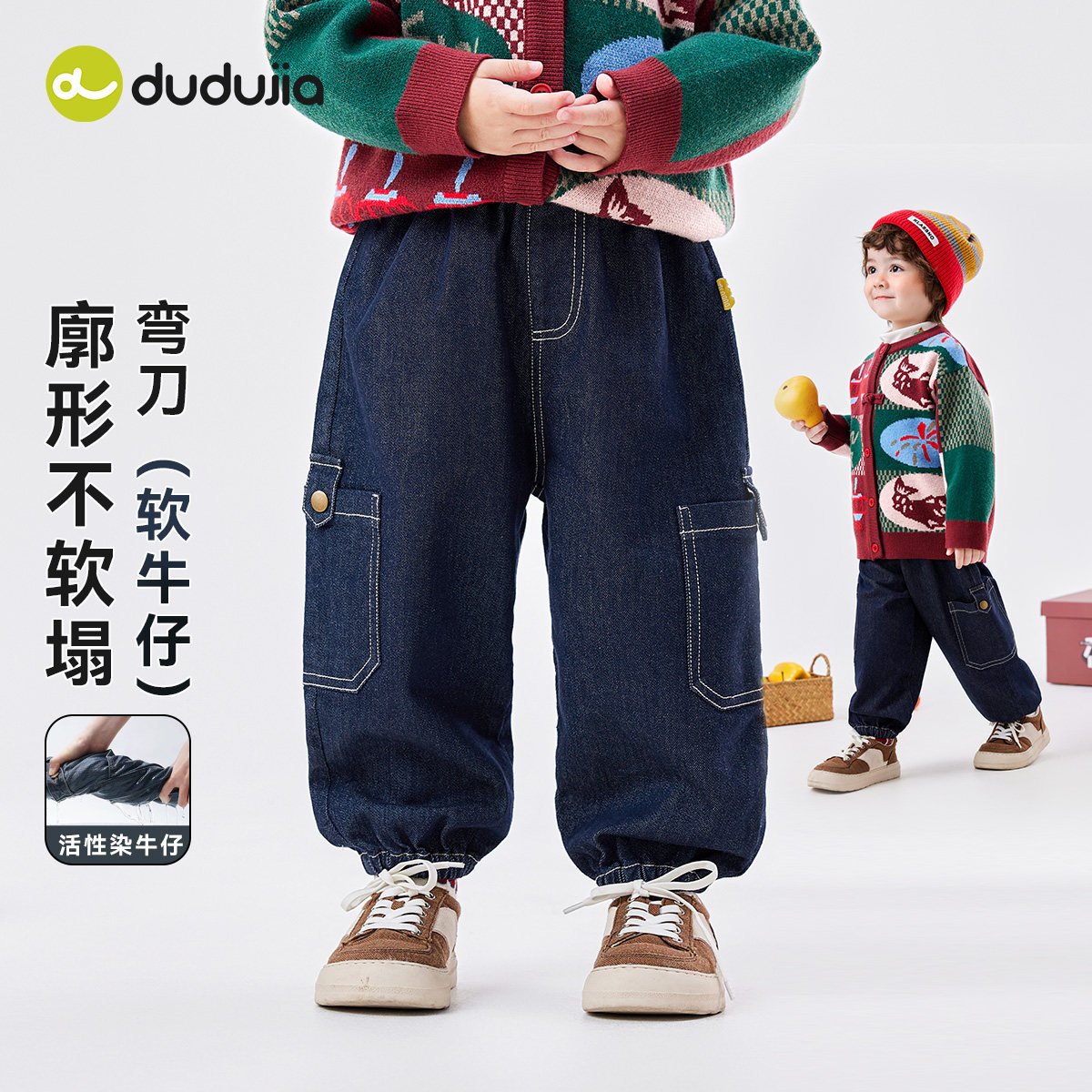 soyo舍予良仓童装儿童加绒牛仔裤秋冬装柔软针织男童长裤女童裤子