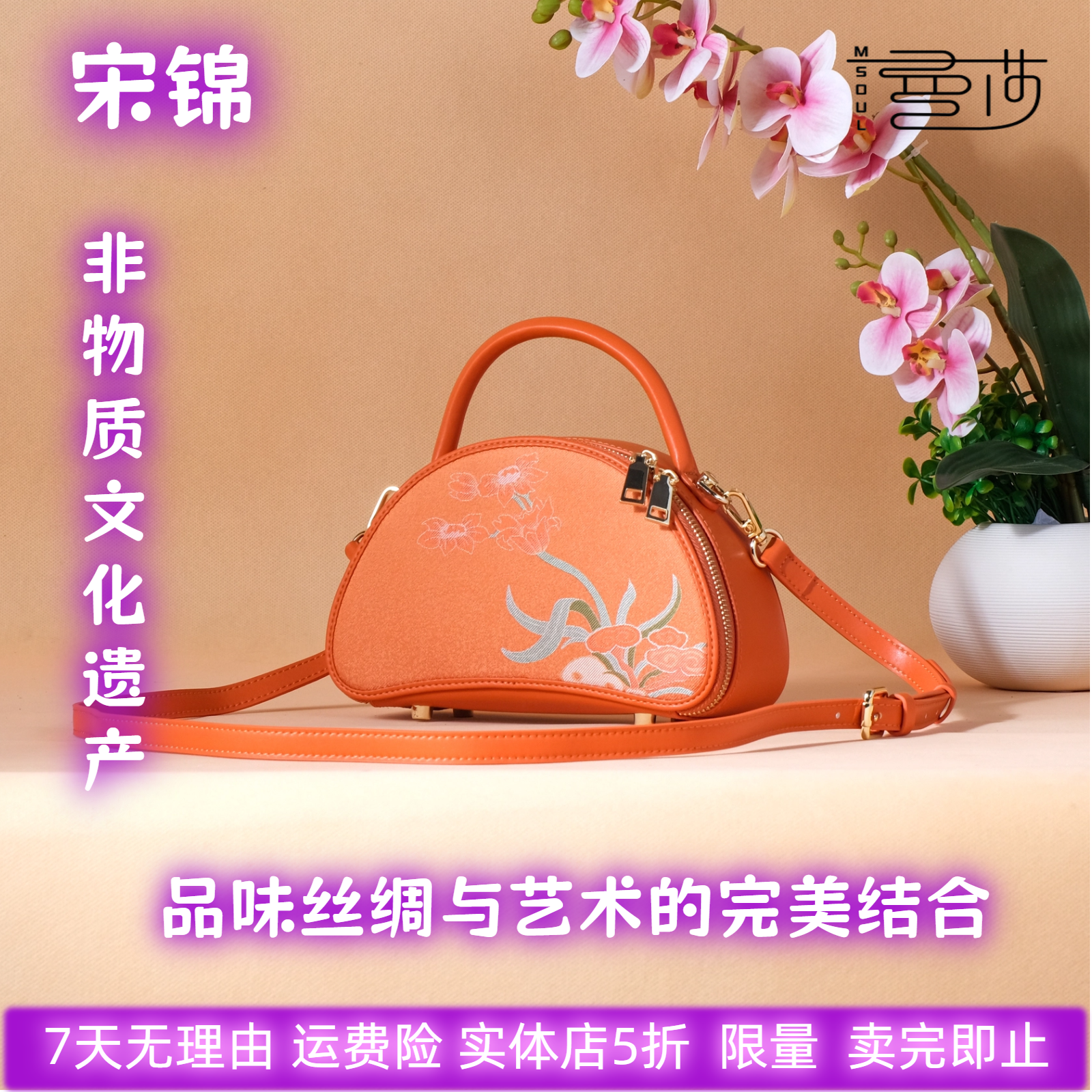 曼莎国风宋锦香云纱手提斜挎刺绣真丝牛皮新款新中式女包旗袍包包