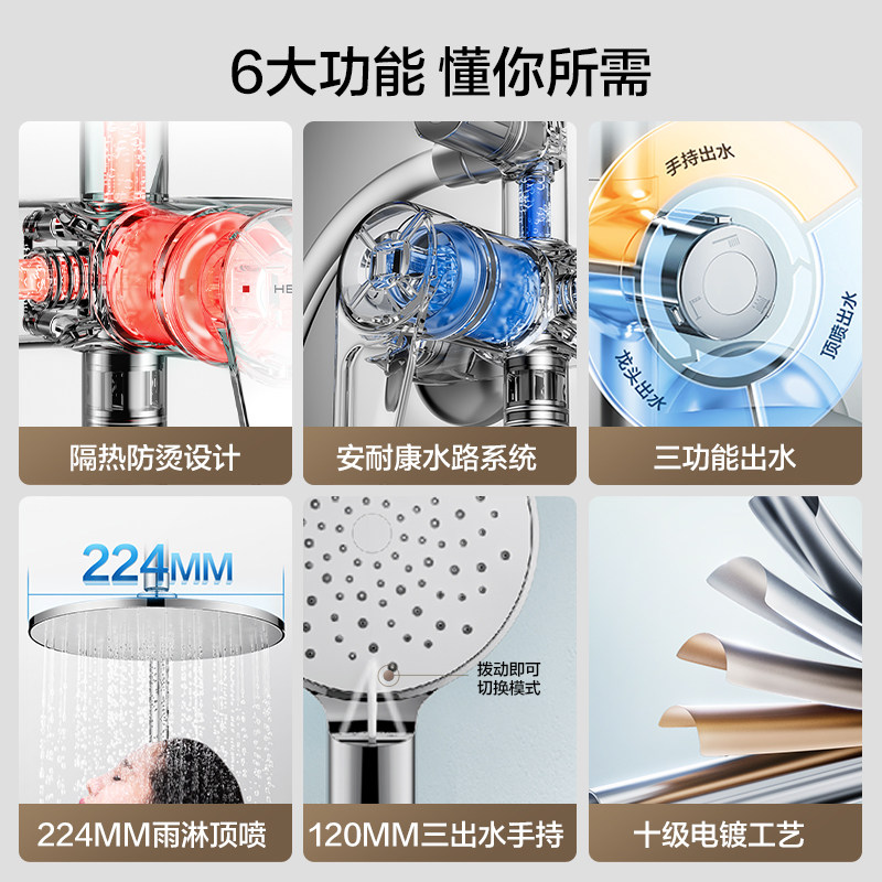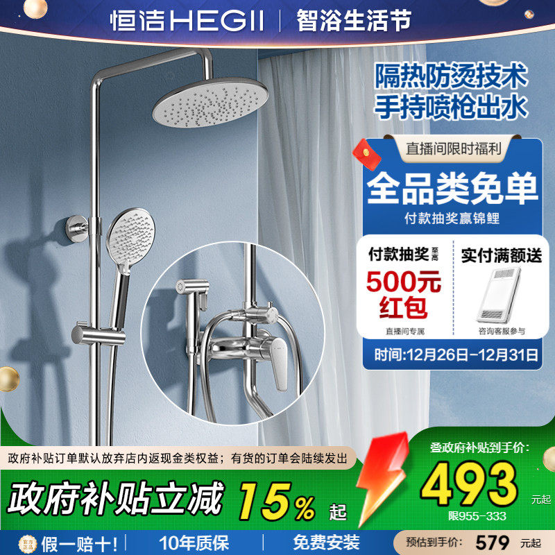 恒洁淋雨明装喷头易洁增压淋浴花洒卫生间浴室壁挂式家用套装955