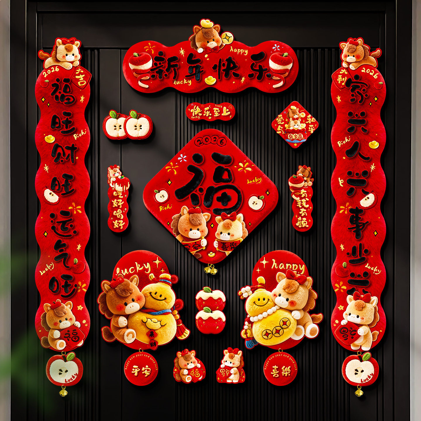2026马年磁吸对联春联春节过年创意高档福字门贴摆件新年装饰年货