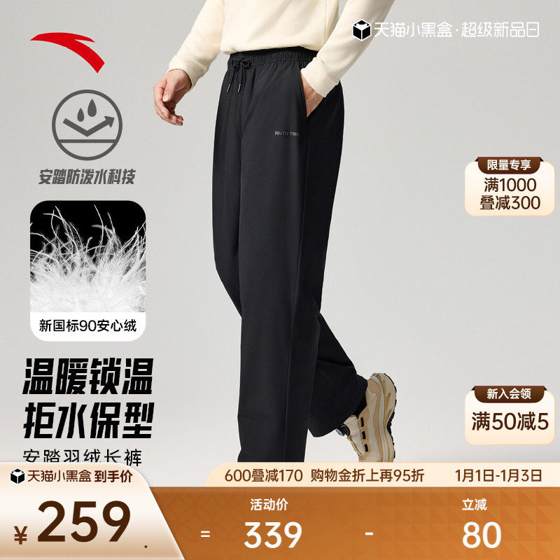 安踏羽绒长裤男士冬季新款防泼水加绒保暖休闲直筒棉裤运动长裤子