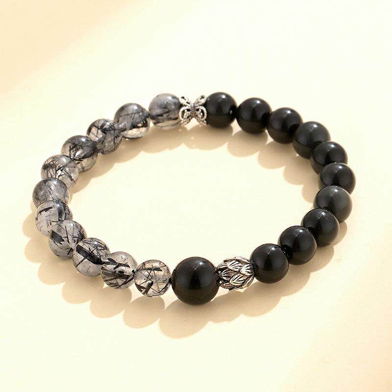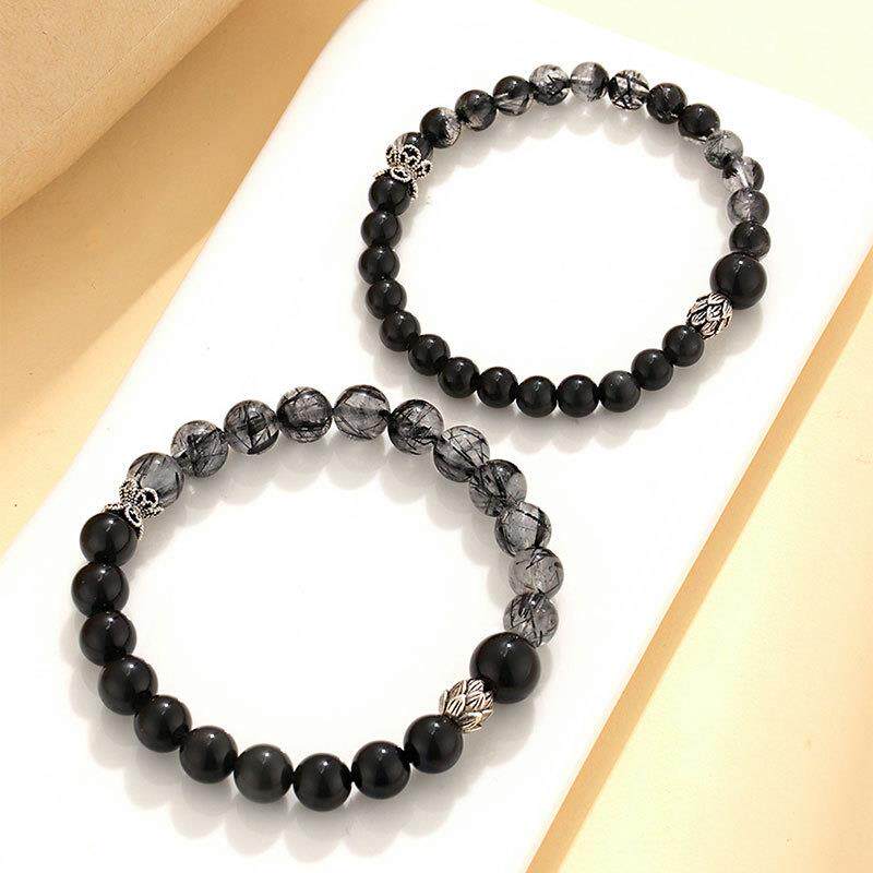 巴度新品黑曜石串珠情侣手链百搭高级感原创黑发水晶手串首饰
