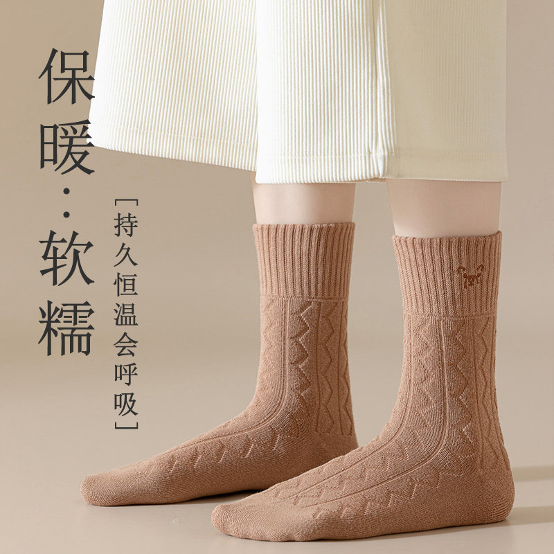 90%羊毛加厚袜子女冬天新款爆款保暖中筒袜防寒抗菌无骨长筒袜