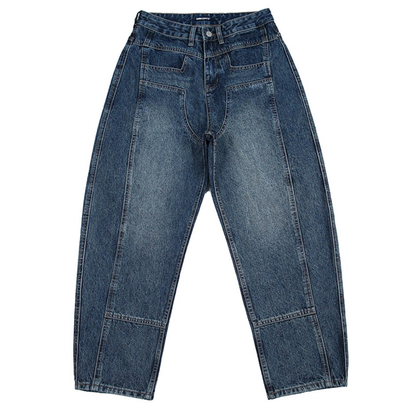 RAPPEYE 国潮设计感复古美式高街宽松显瘦直筒侧袋弯刀阔腿牛仔裤