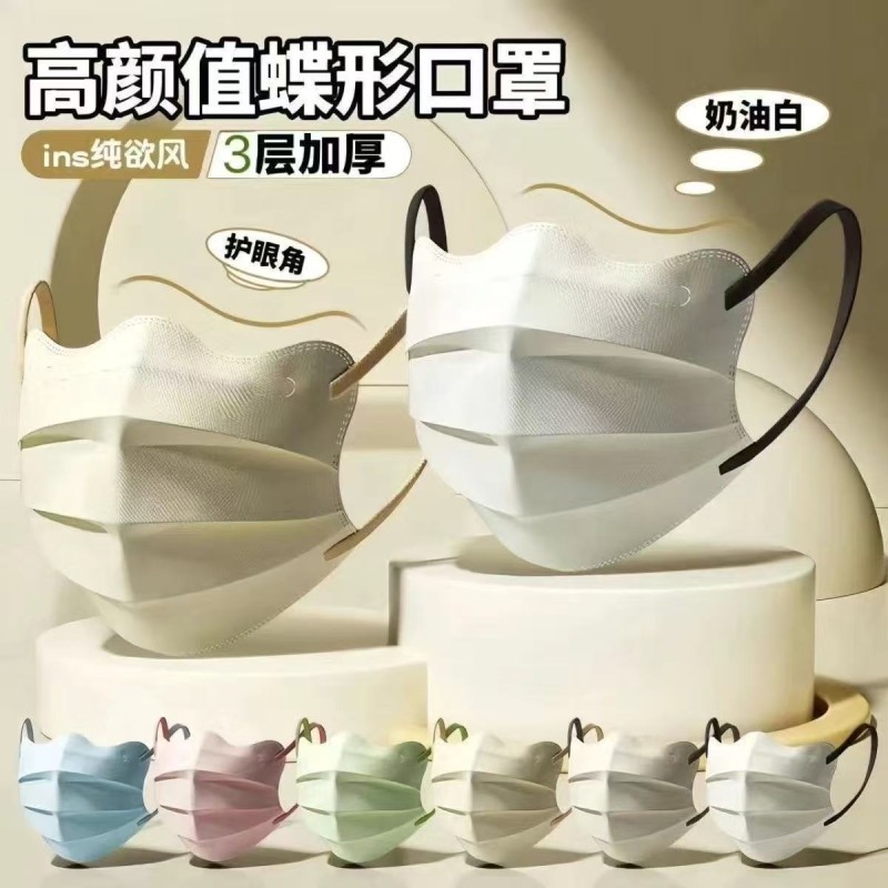 一次性v脸口罩女高颜值蝴蝶莫兰迪护眼角口罩显脸小防护薄款透气