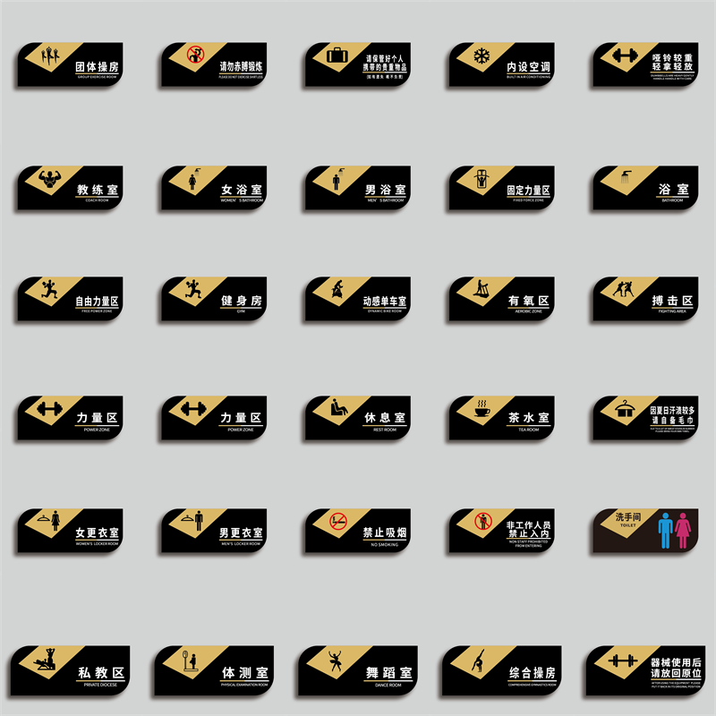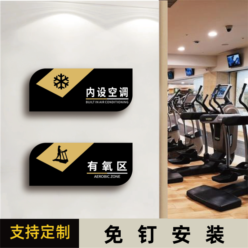 健身房标识牌力量有氧区体测室团体操房私教室动感单车器材器具归位轻拿轻放请勿赤膊锻炼创意指示牌定制做