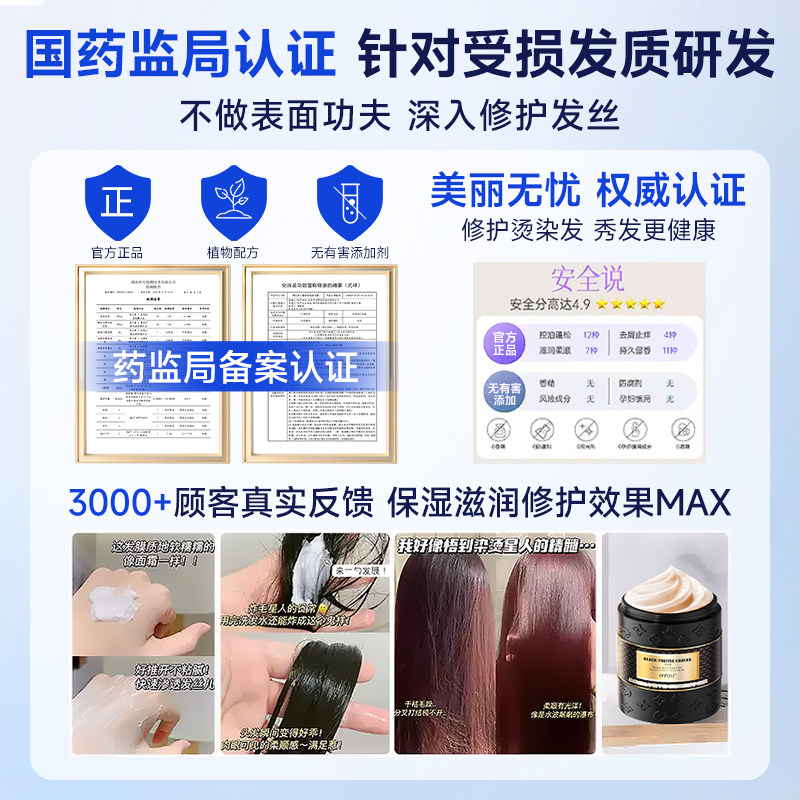 闪钻鱼子酱发膜蛋白还原酸柔顺护发素修护干枯毛躁护发顺滑旗舰店