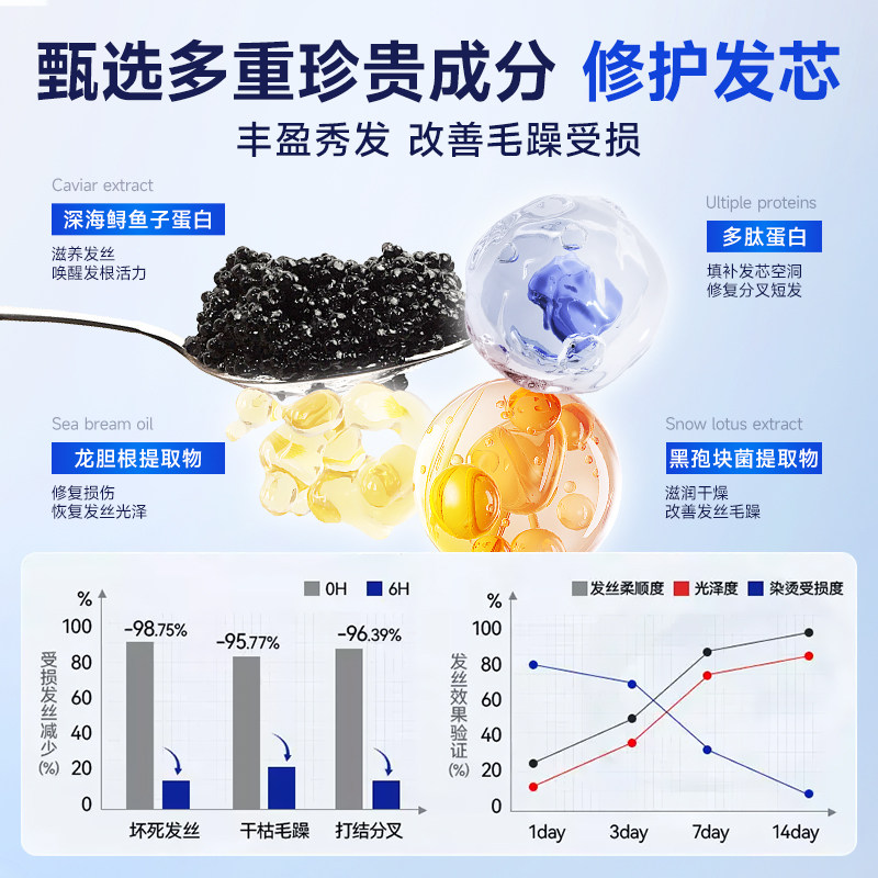 鱼子酱发膜修复干枯染烫受损补水顺滑蛋白矫正改善毛躁角柔顺光泽