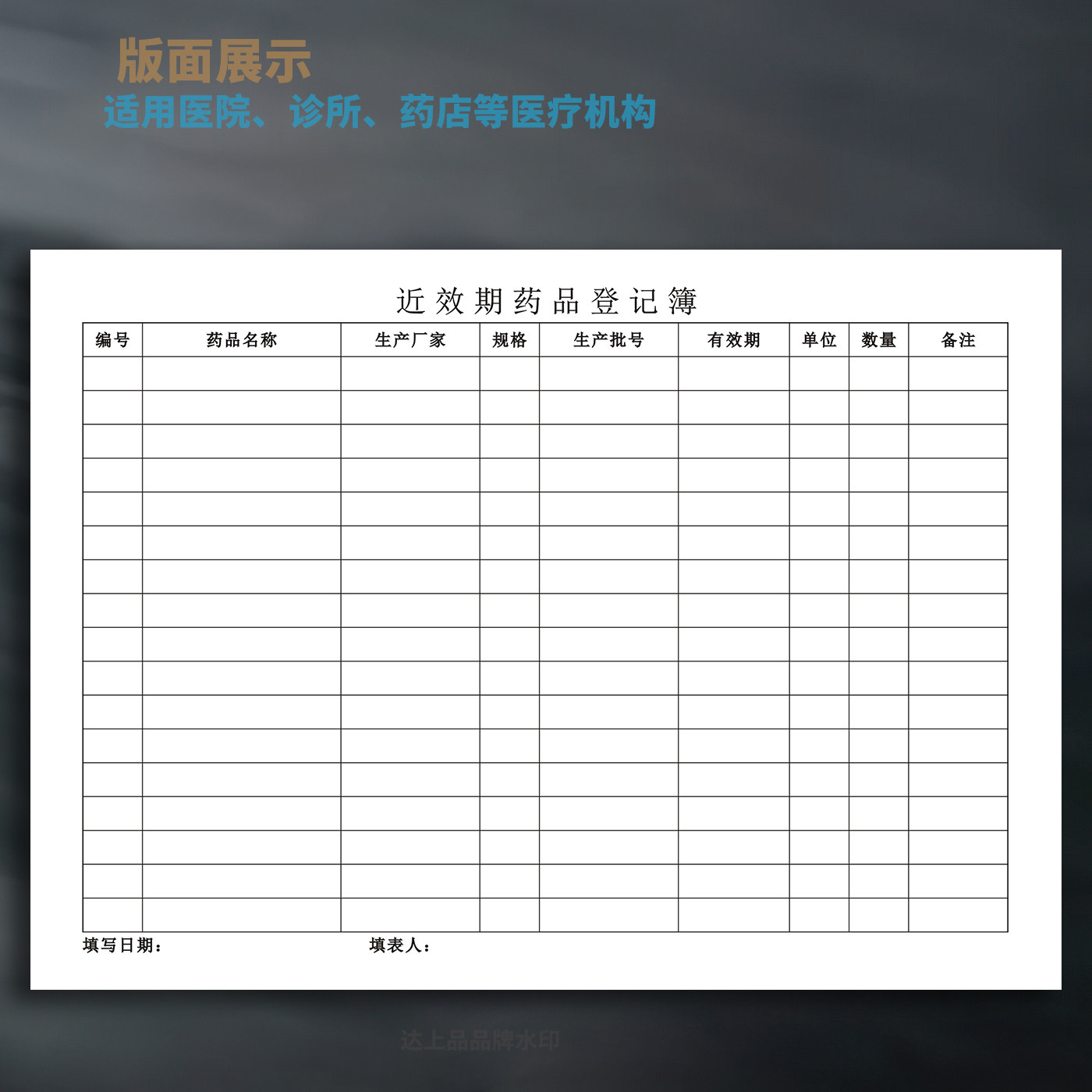 近效期药品登记簿催销表定制医院报损过期药品销毁登记本药品一览表药品管理台账门诊药房药店临期药品记录本