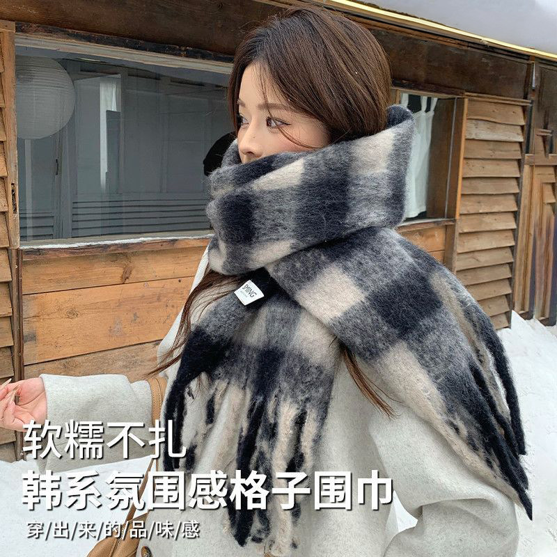 三福格子围巾韩系高级感保暖围脖披肩两用旅游外搭女冬季2025新款