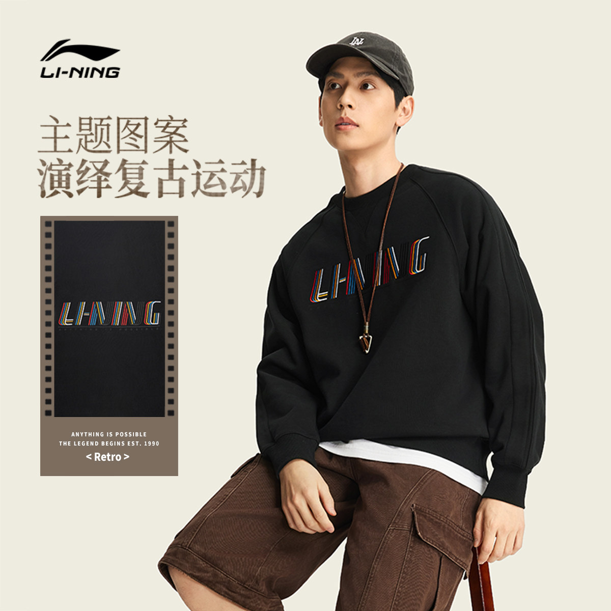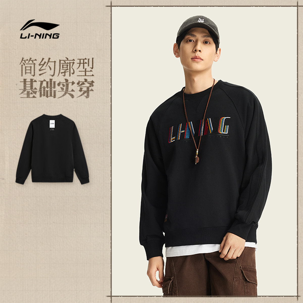 李宁卫衣男士春季2026新款套头衫长袖男装圆领休闲上衣针织运动服