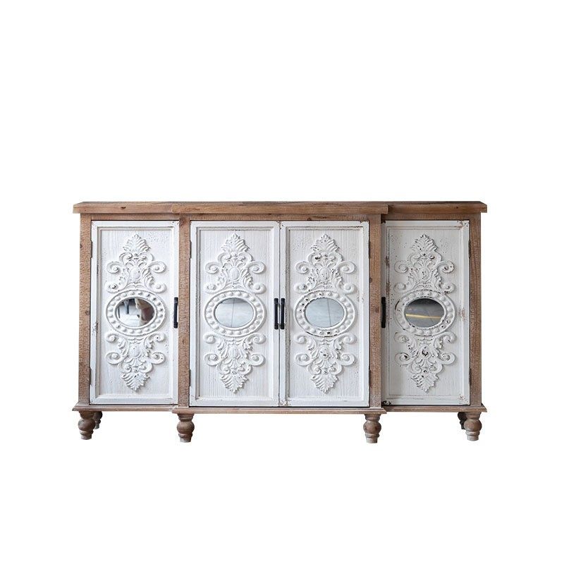 美式乡村客厅玄关柜白色复古做旧雕花实木家居装饰民宿储物柜厂家