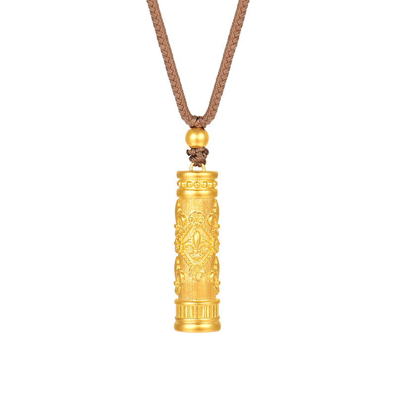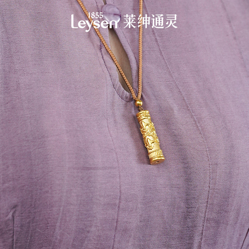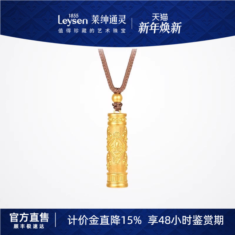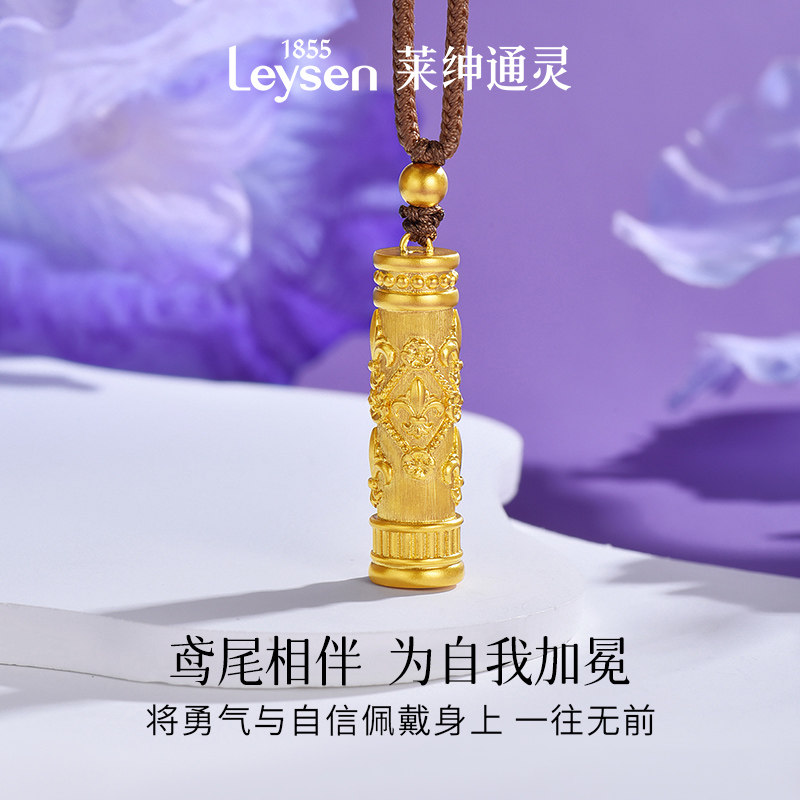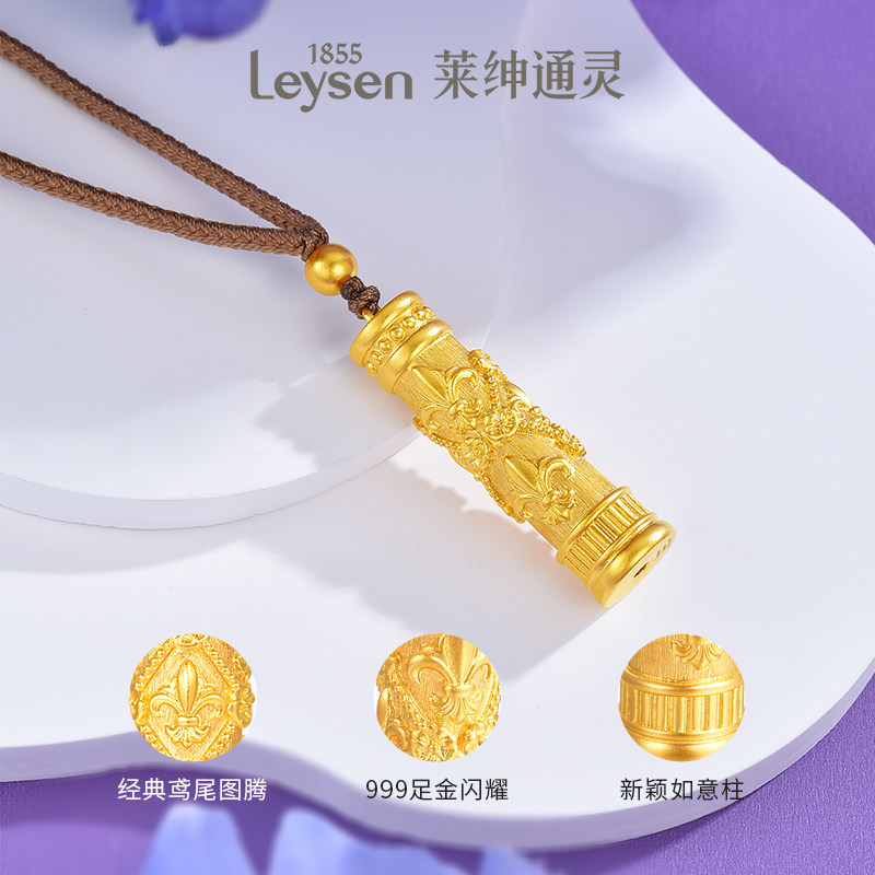 【计价金】莱绅通灵传世金 鸢尾系列 如意柱足金999古法黄金吊坠
