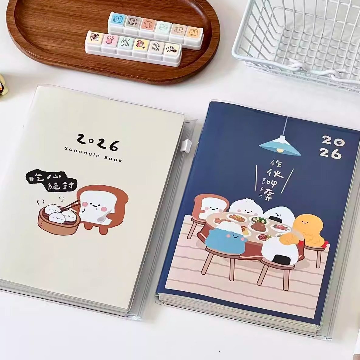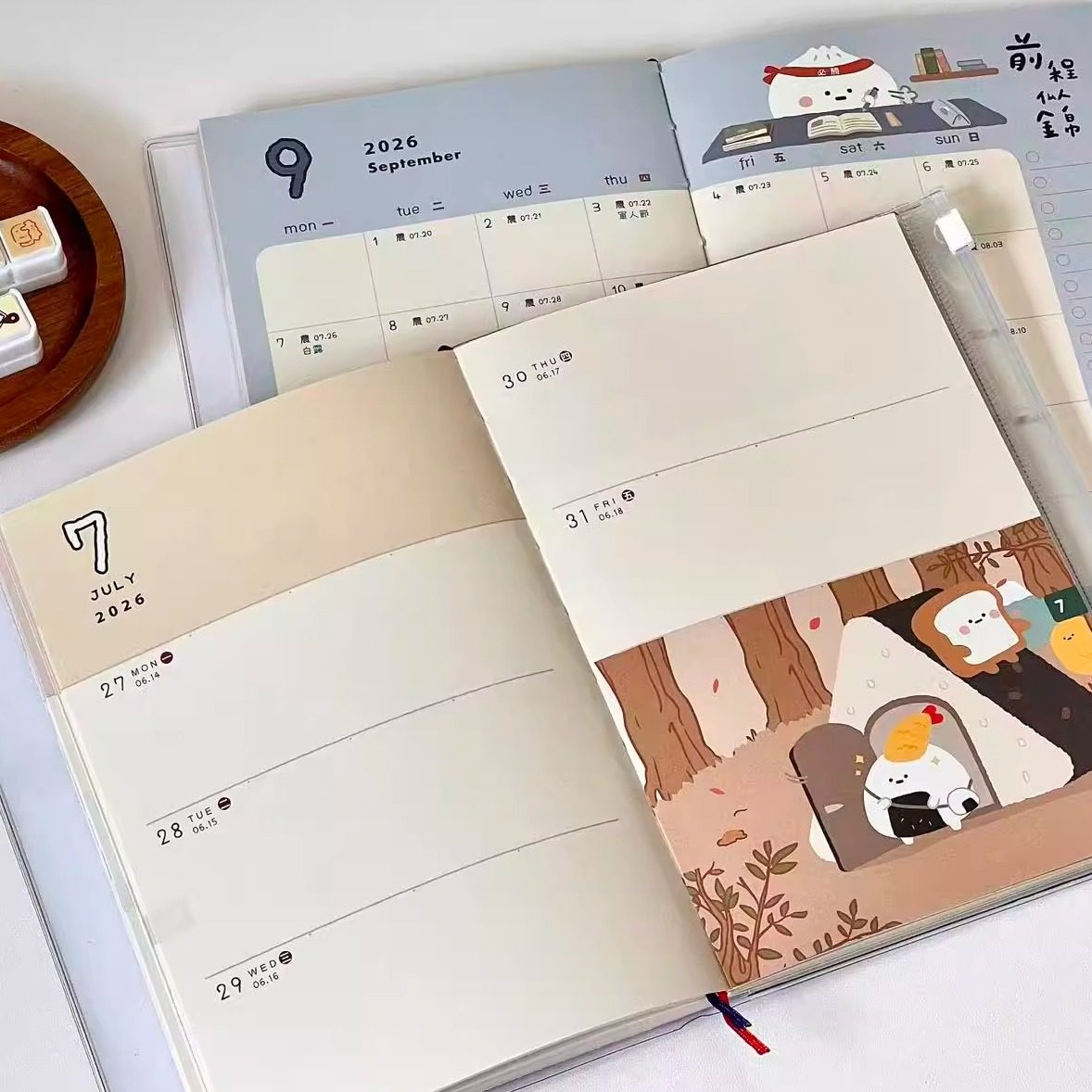 台湾新款2026年小众彩页日程本新款小众卡通月周计划手账笔记本
