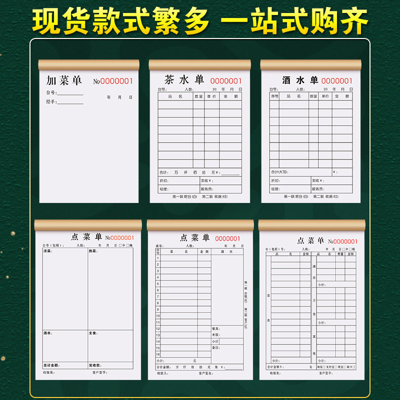 加菜单二联饭店餐饮开单本两联手写结算消费单2连食堂厨房宵夜记账本2联海鲜夜宵店点菜单餐馆饭馆菜单本二连