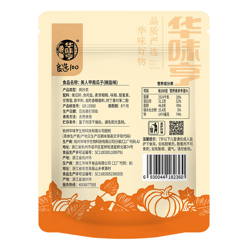 华味亨新疆美人甲南瓜子椒盐长粒熟原味坚果炒货新货大颗粒好物