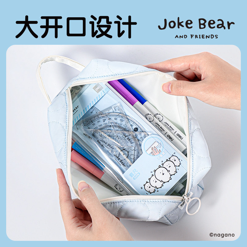 得力自嘲熊联名笔袋joke bear动漫周边大开口大容量2026新款女小学生轻便笔盒初高中文具收纳收纳包ins风简约