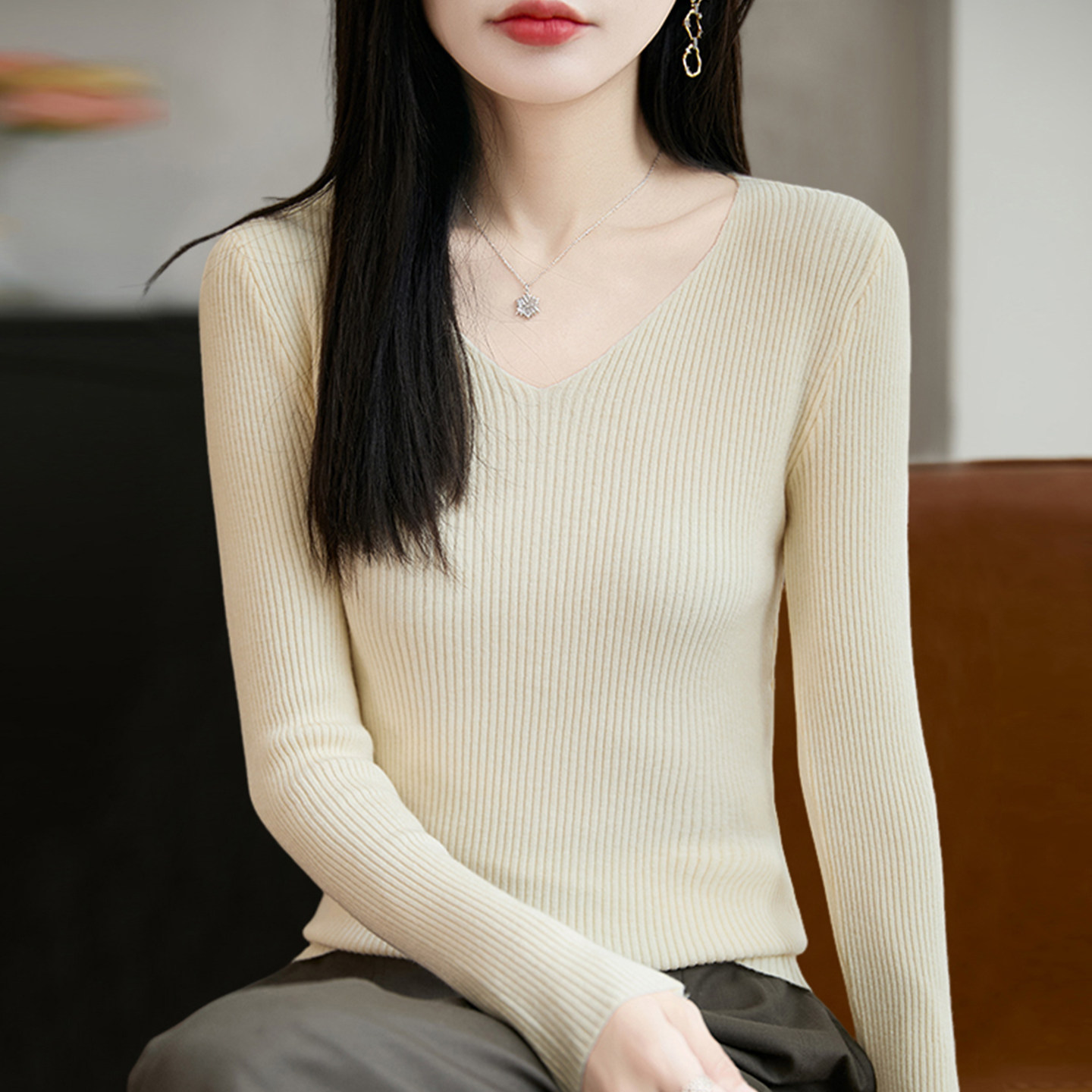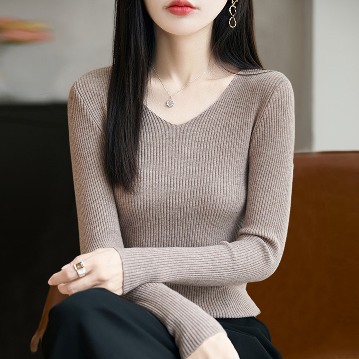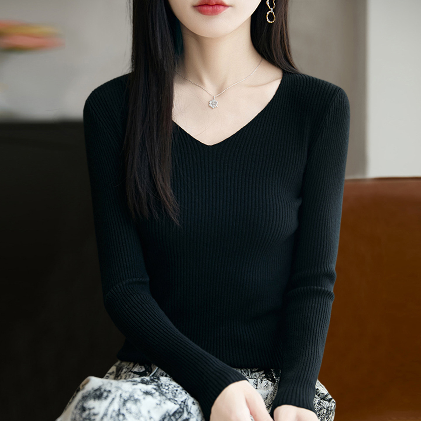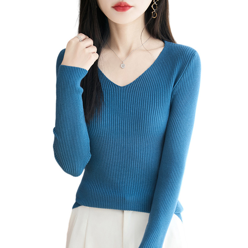撤标撤柜(A)V领显瘦针织打底衫女春秋洋气大码女装上衣秋冬毛衣