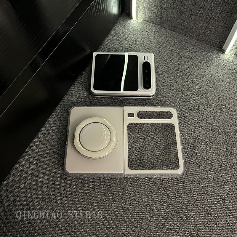 轻调 ins风古董白360度旋转支架适用于华为Pura X手机壳全包新款pocket典藏版折叠屏p50宝盒翻盖防摔保护套
