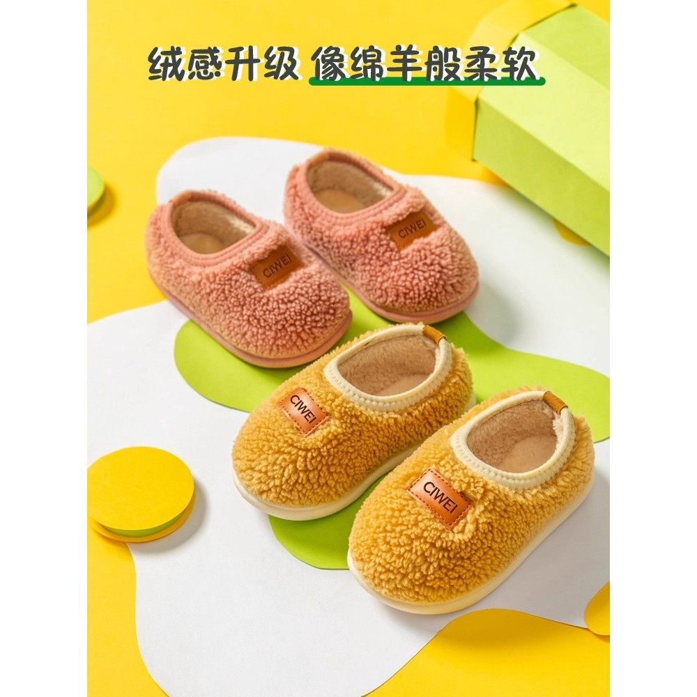 儿童棉拖鞋冬季室内家居男童鞋包跟防滑软底毛毛绒女小孩宝宝棉鞋