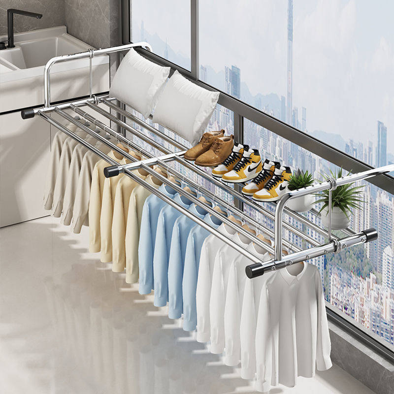 阳台晾衣神器护栏家用晾衣架折叠晾晒架窗外伸缩晒鞋架室外窗台