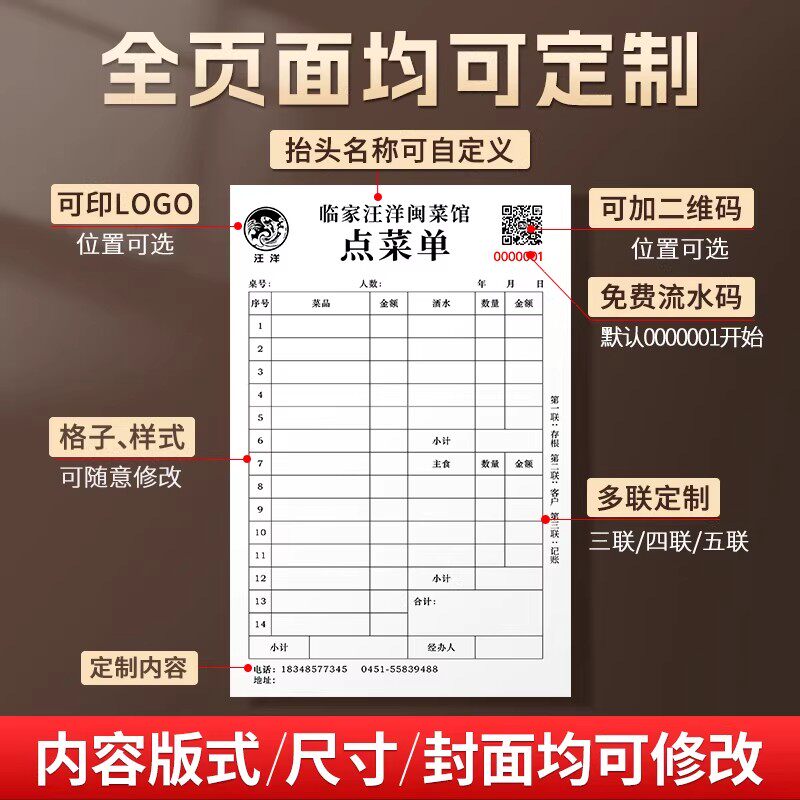 10本大号加厚100页点菜单二联三联一联菜单定制饭店烧烤店餐饮专用单联两联点单本手写菜单本定做酒店火锅店