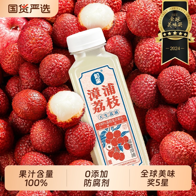 漳浦荔枝水100%复合果汁无添加防腐剂健康国货饮料300g瓶如果香精