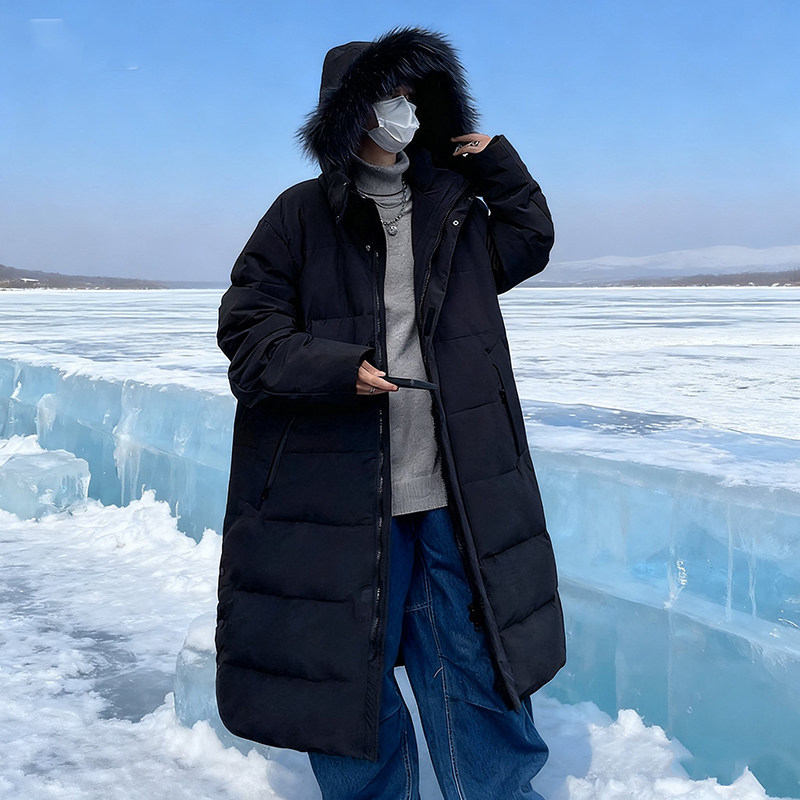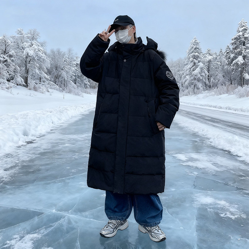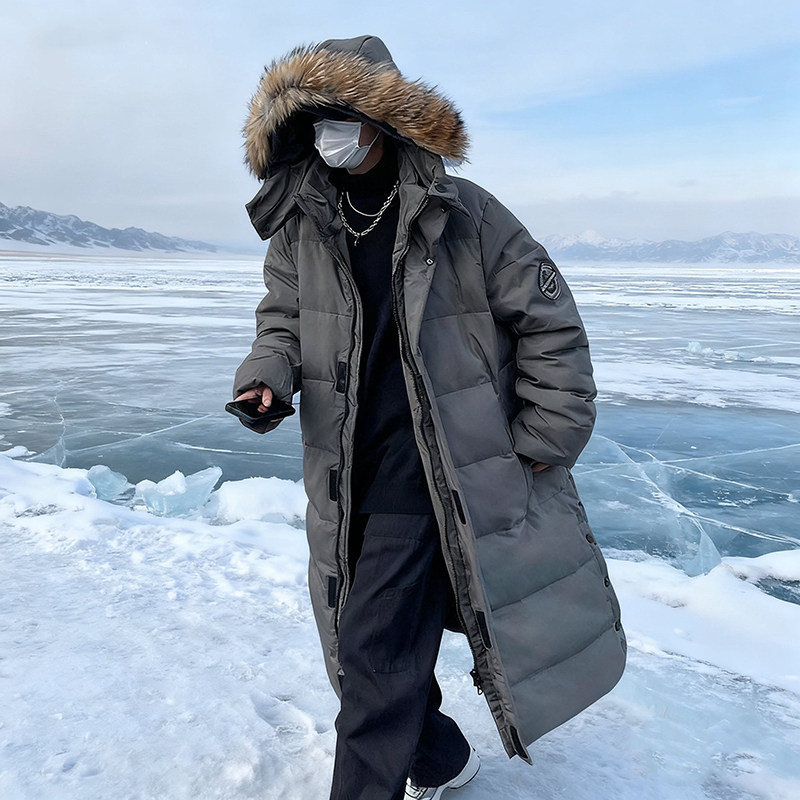 羽绒服男士中长款过膝2025新款加厚大毛领冬季大码白鸭绒外套防风