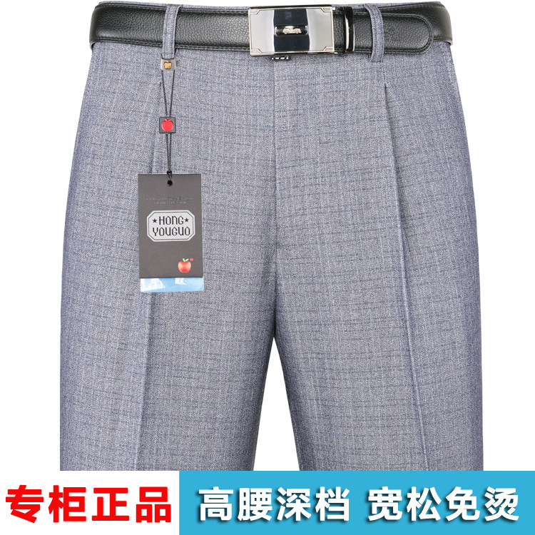 苹果男士中老年西裤免烫高腰宽松直筒西装裤秋冬厚款商务休闲长裤