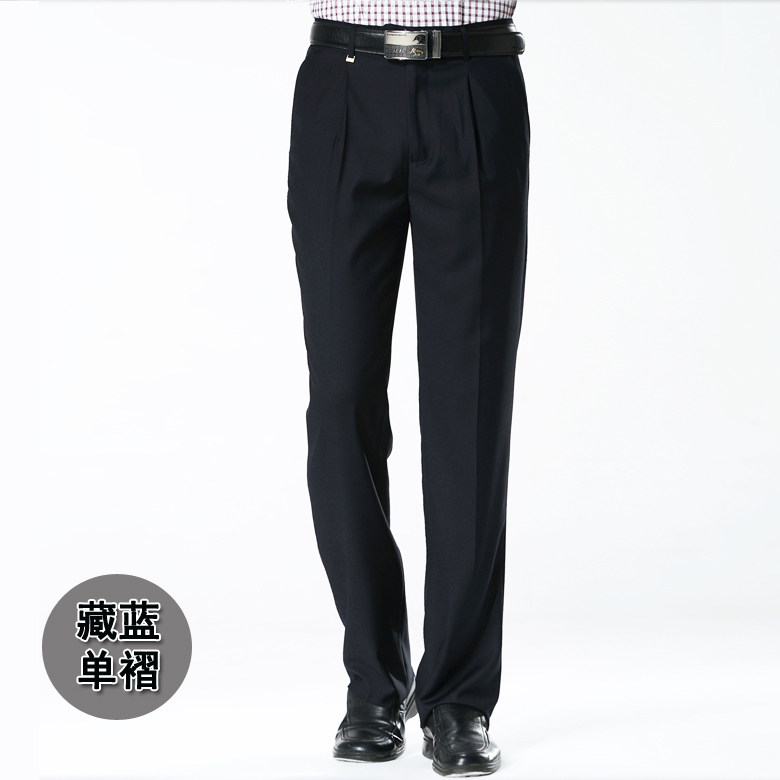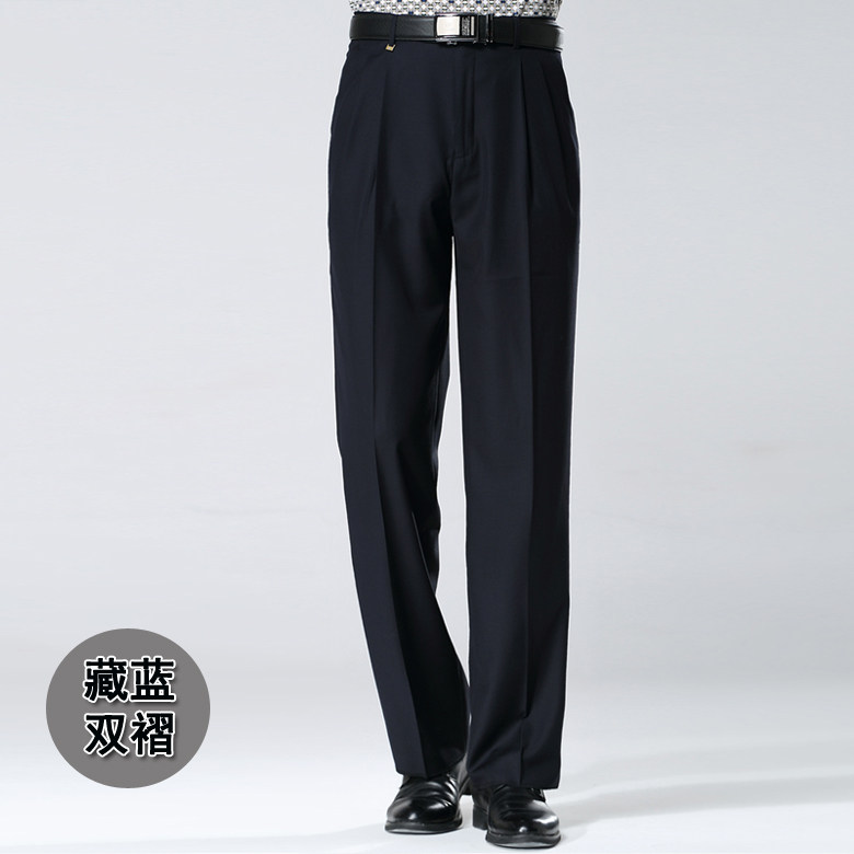 啄木鸟男士秋冬厚款高腰中老年直筒免烫宽松男裤大码西裤中年长裤