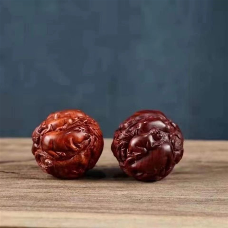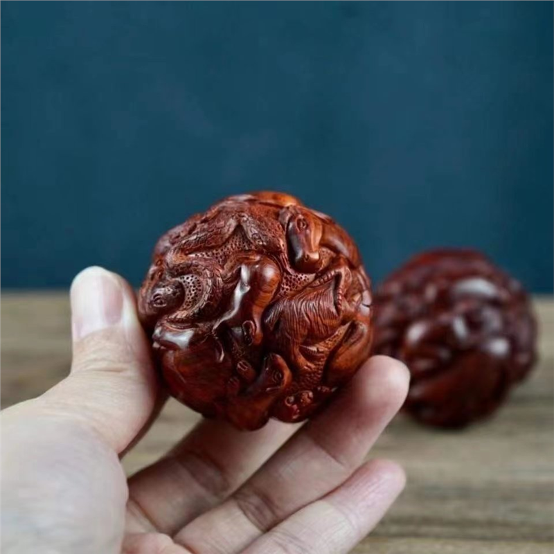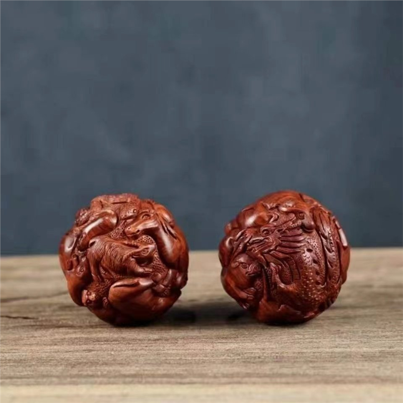 黄花梨十二生肖手球 实木雕刻保健按摩球45mm 中式文玩健身球