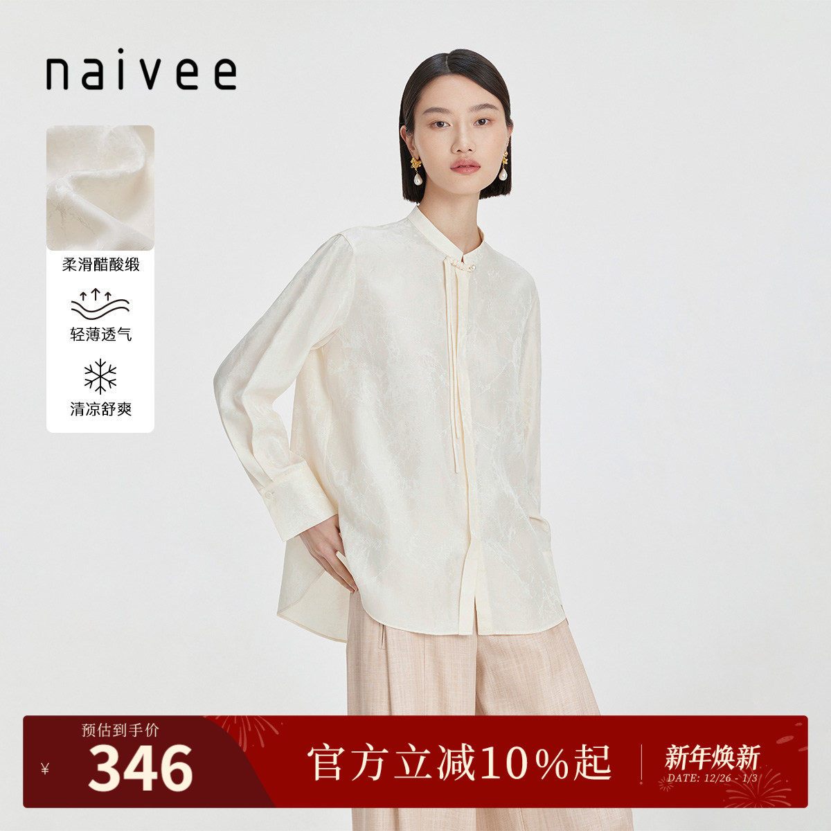 缎面提花醋酸衬衫』naivee纳薇新中式长袖上衣女秋冬盘扣立领