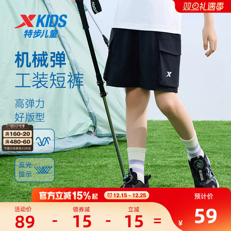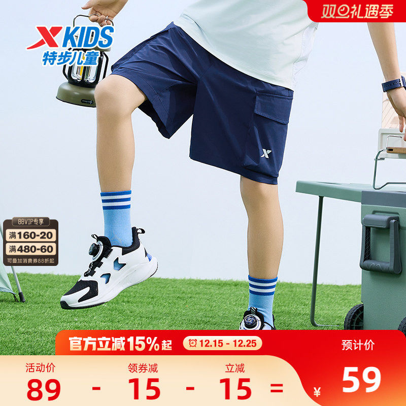 特步童装男童速干工装五分裤2025夏季新款儿童短裤中大童运动夏装