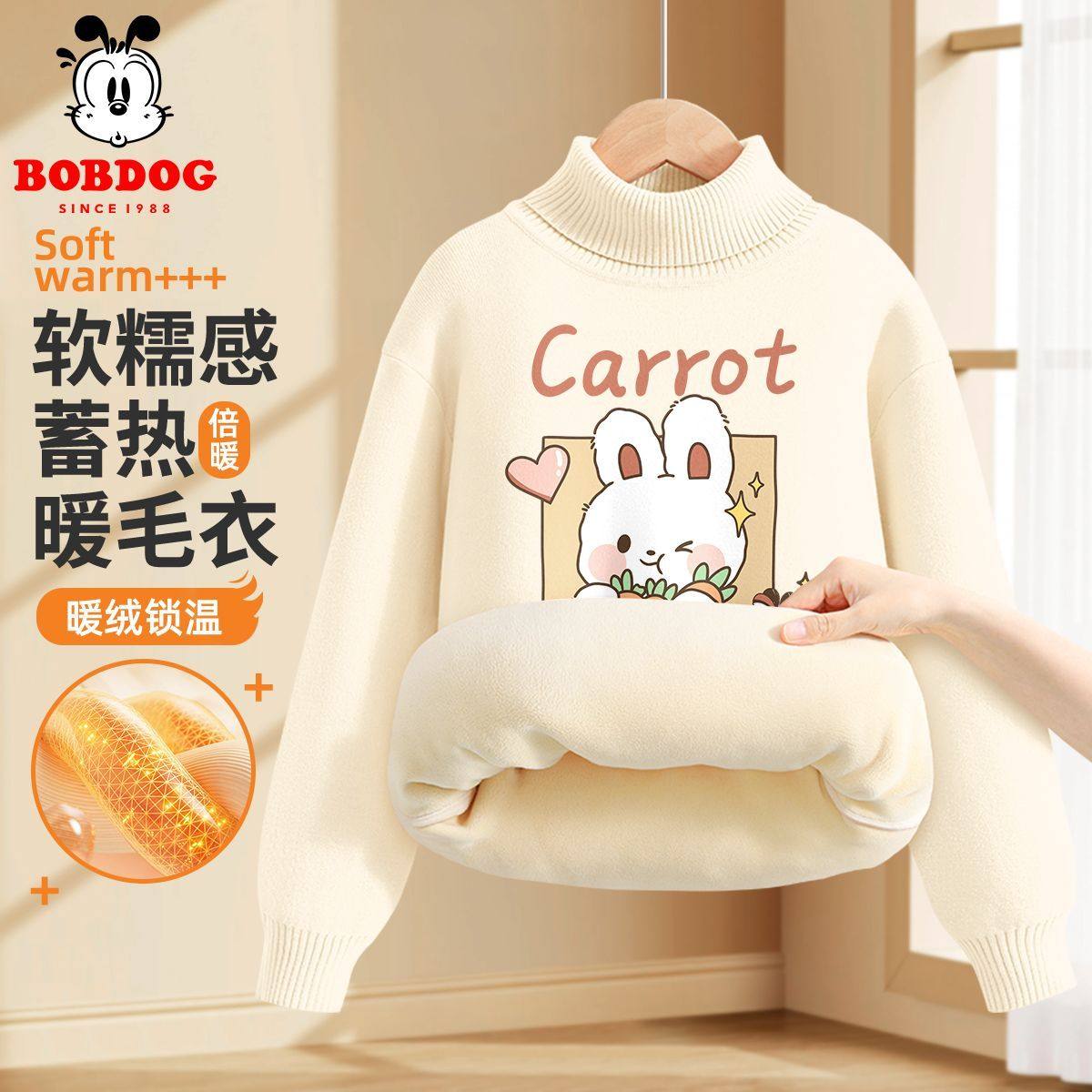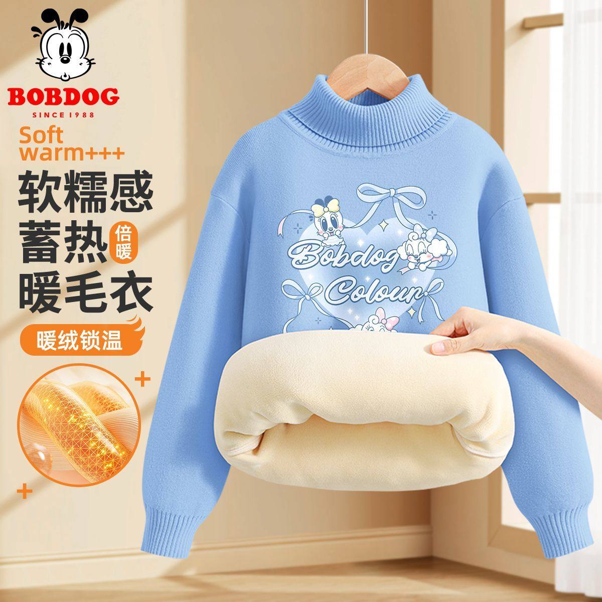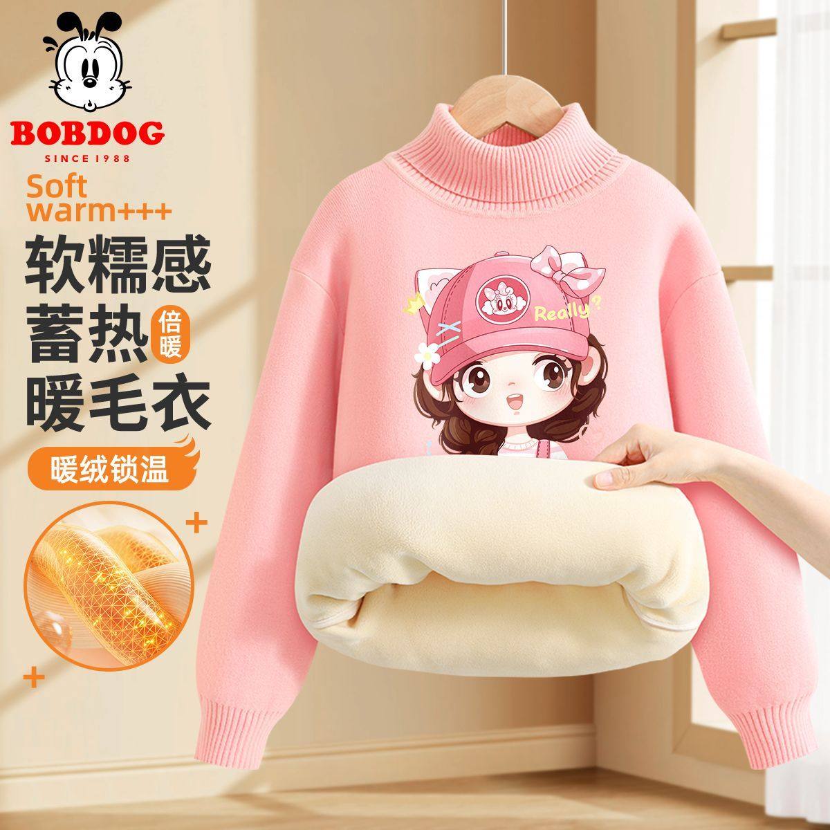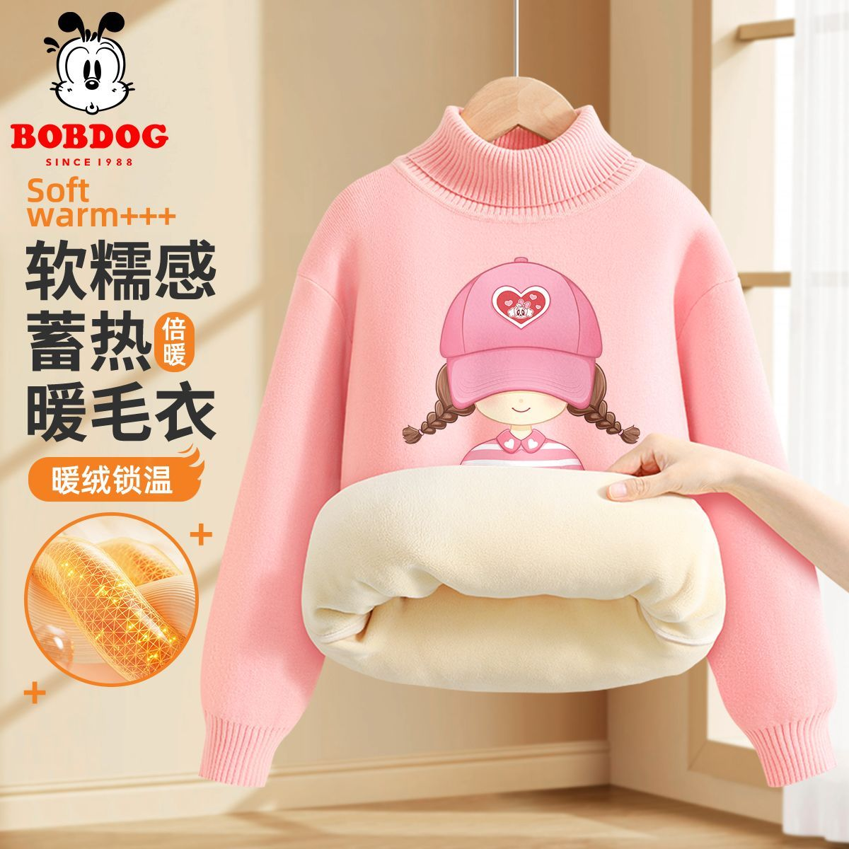 巴布豆儿童加厚加绒毛衣高领女童内搭秋冬款2025新款洋气打底上衣