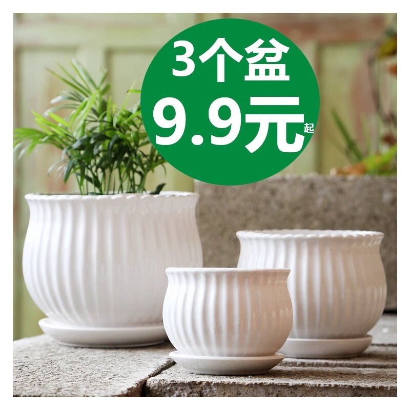 花盆陶瓷大号清仓特价带托盘家用白色绿萝蝴蝶兰多肉花盆大口径