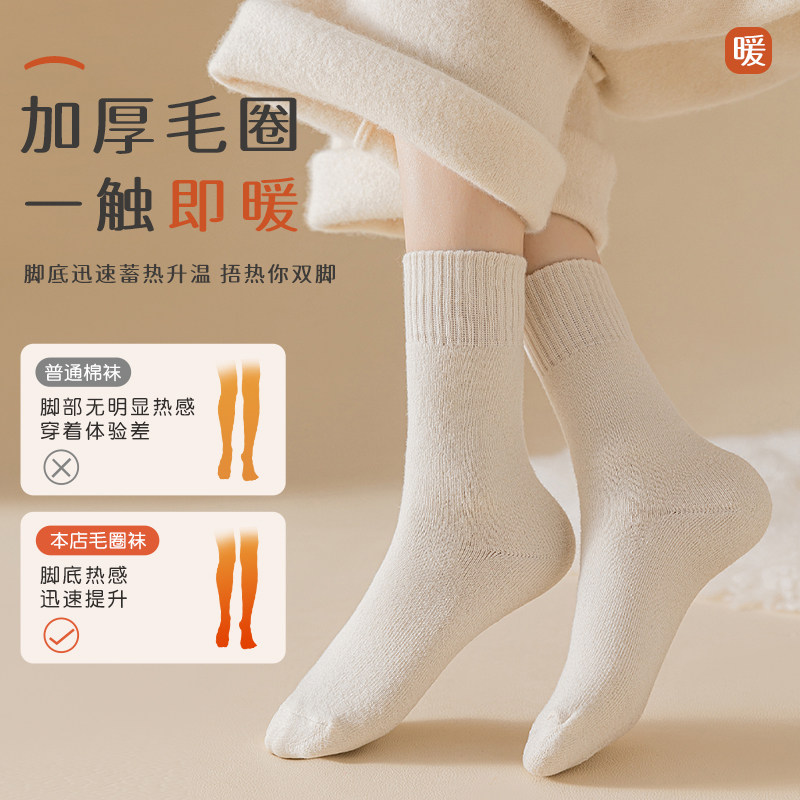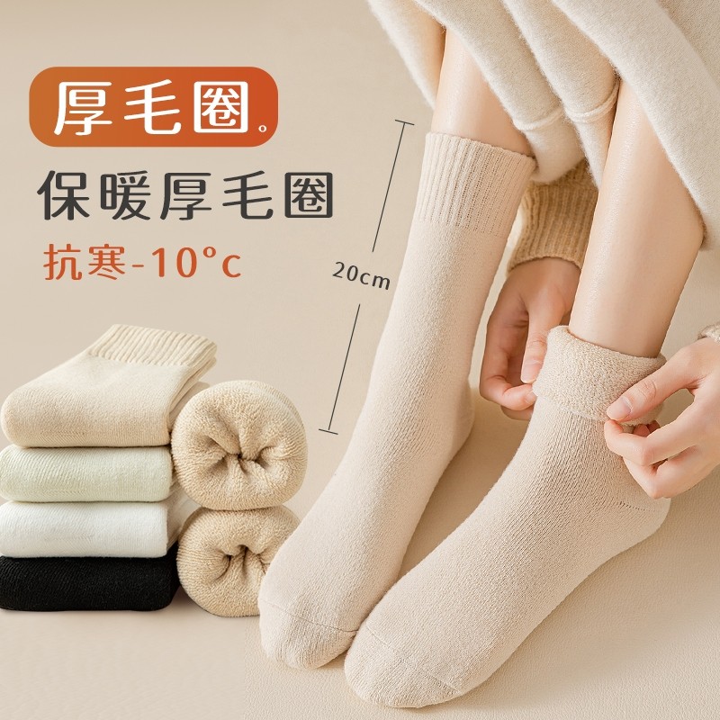 厚袜子女冬季加绒女士毛圈长袜毛巾加厚保暖长筒月子袜季羊毛加长