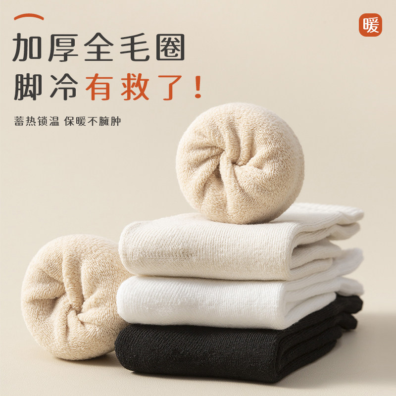 【送3双同款】秋冬新疆棉厚款中筒袜纯棉纱线毛巾底袜子男长袜女