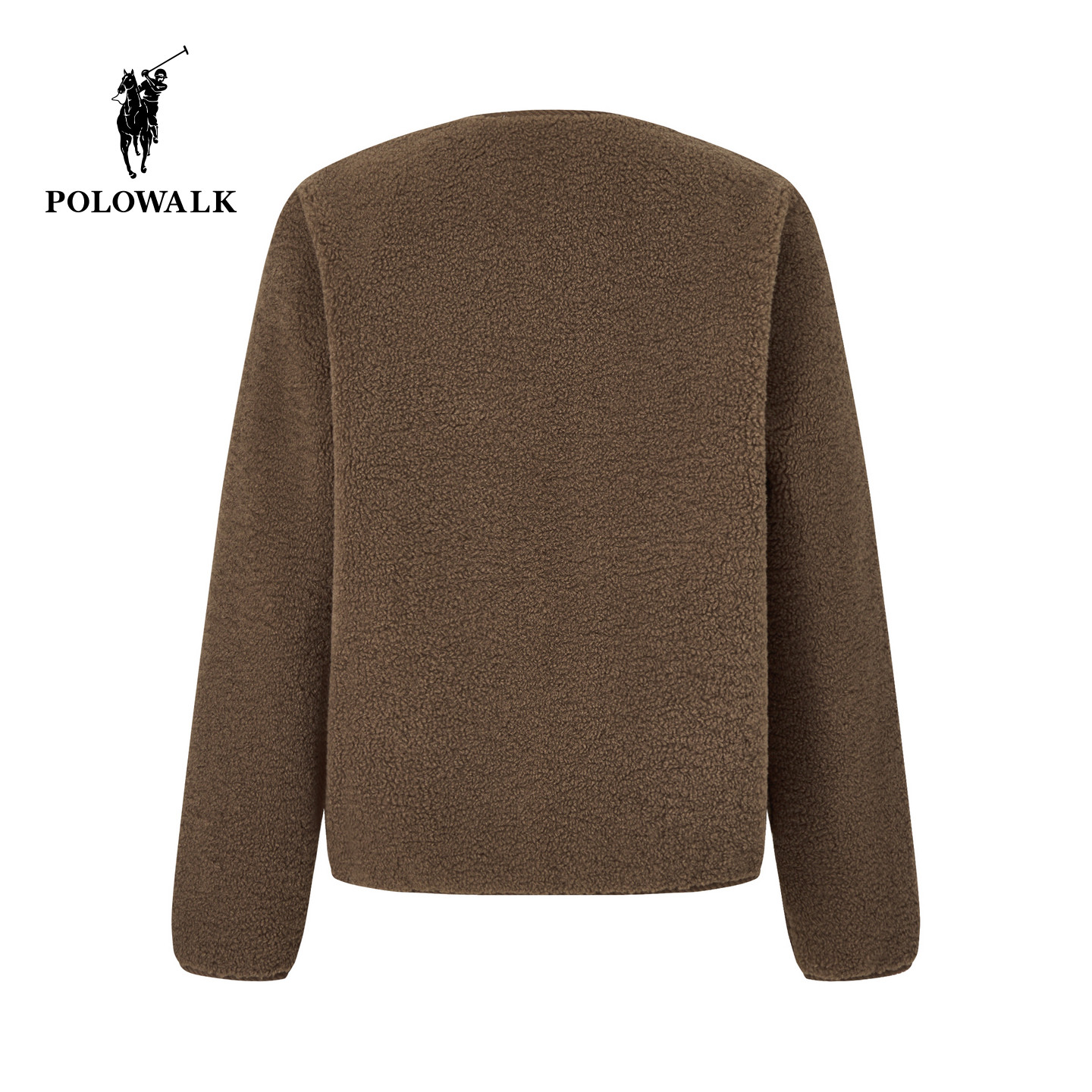 POLOWALK女式外套2025秋季新品摇粒绒百搭圆领简约气质绒感外套女