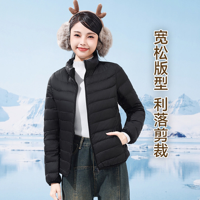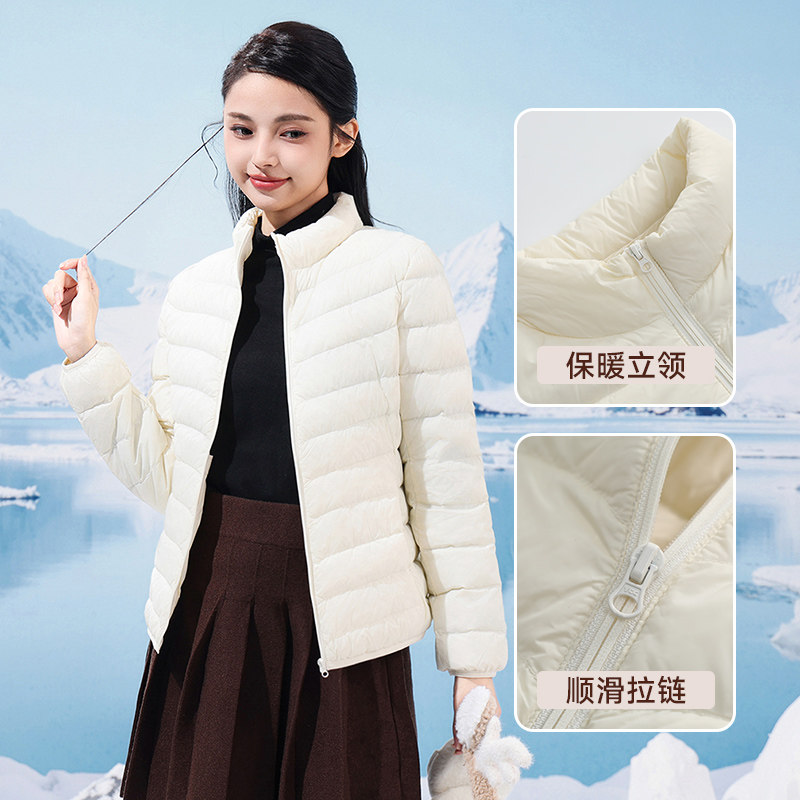 鸭鸭轻薄羽绒服女2025年秋冬反季短款立领修身舒适上衣内胆外套J