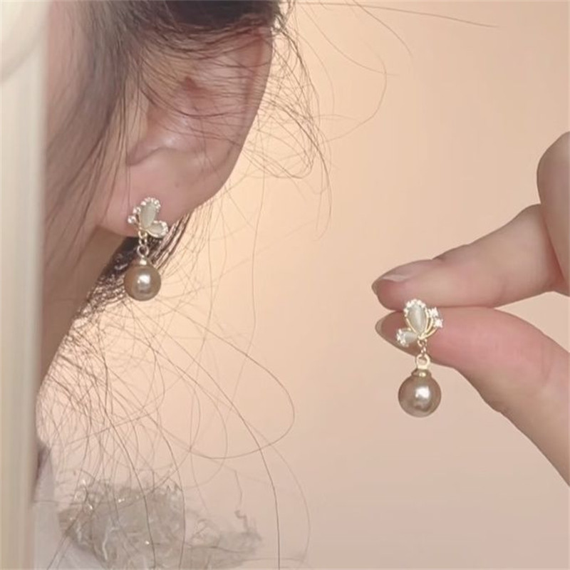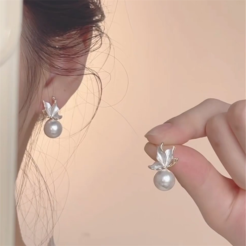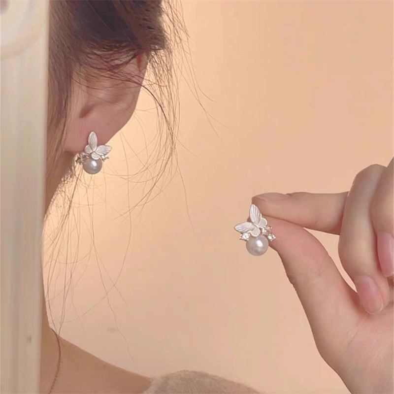 精致设计感蝴蝶珍珠耳钉法式925银针 小众设计感耳环新款洋气耳饰